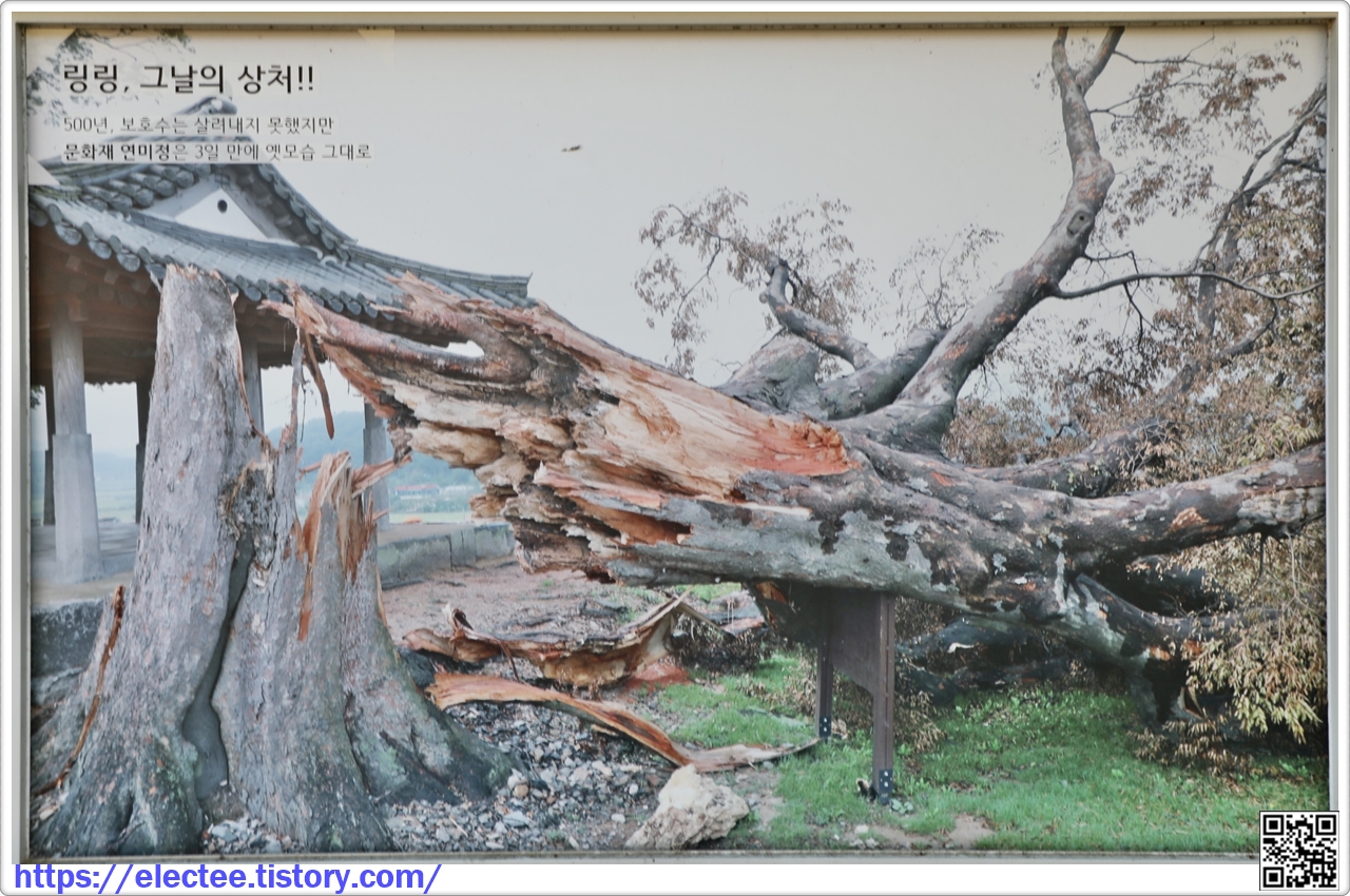 태풍 링링에 500년 된 느티나무는 쓰러졌지만, 아직 돈대 안에 느티나무 한 그루가 더 있다.
