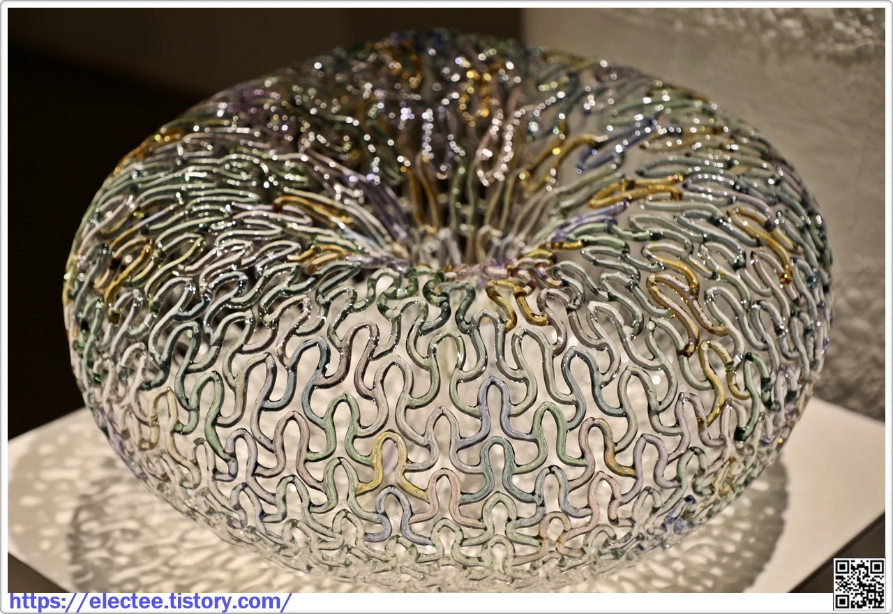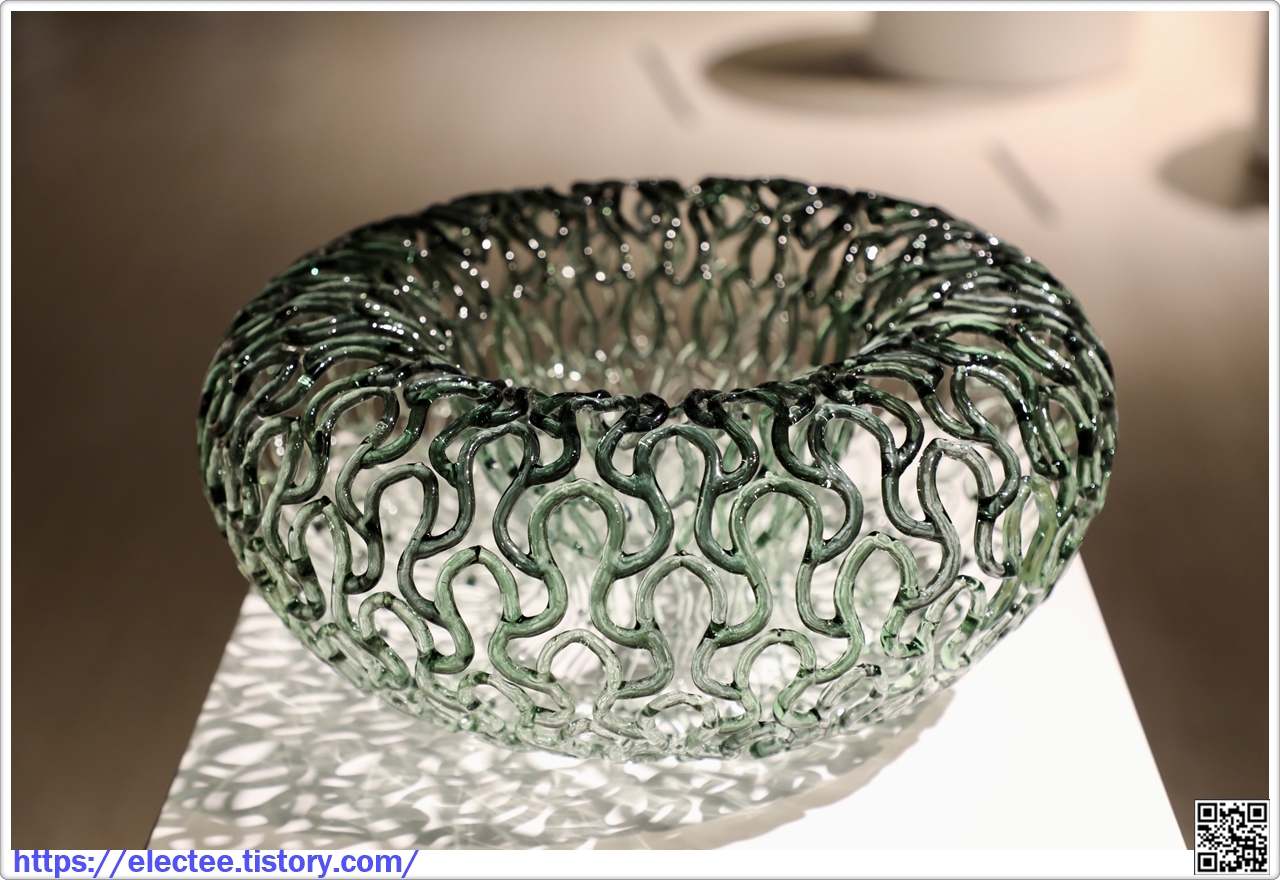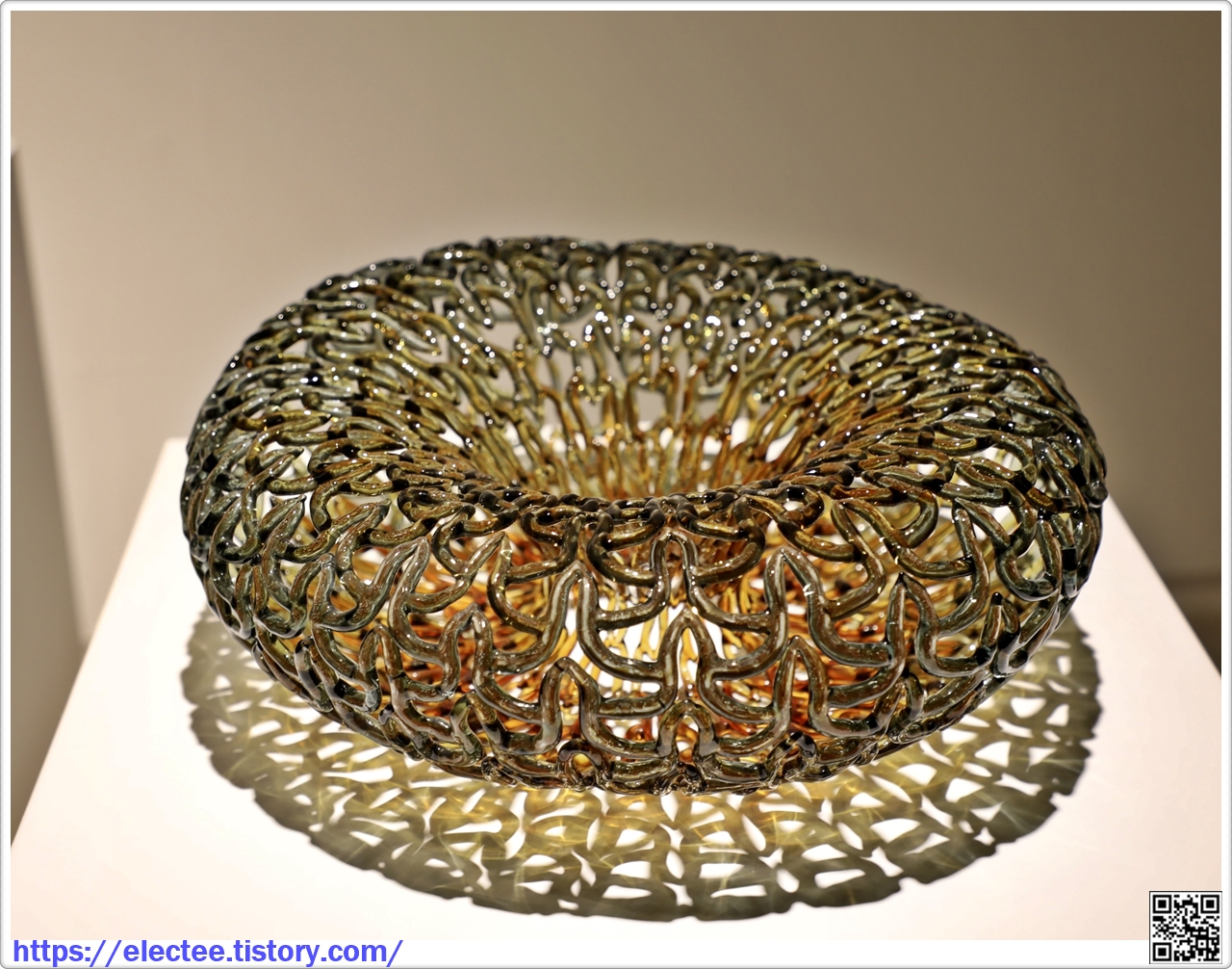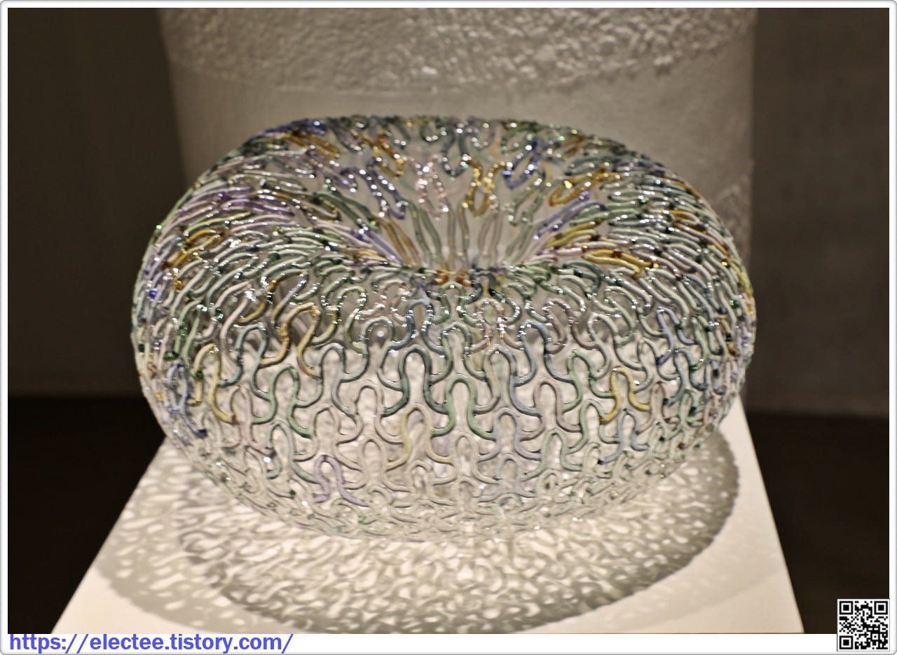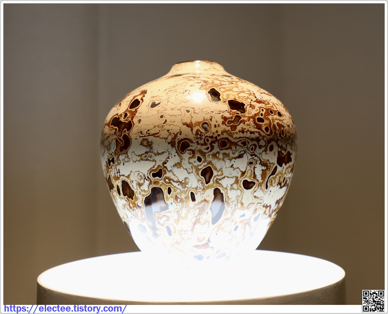 유리로 만든 건지 도자기로 만든 건지 자세히 알 수 없다. 전통적인 도예 기법을 현대적으로 재해석한 작품이다.