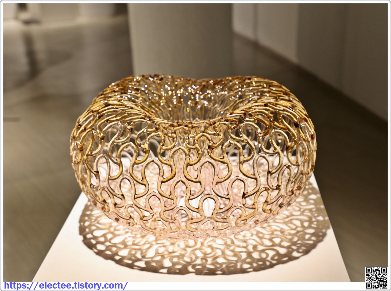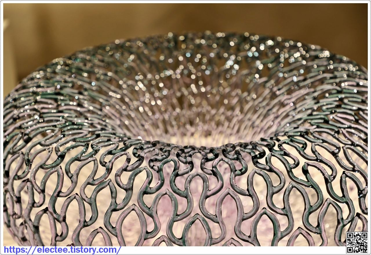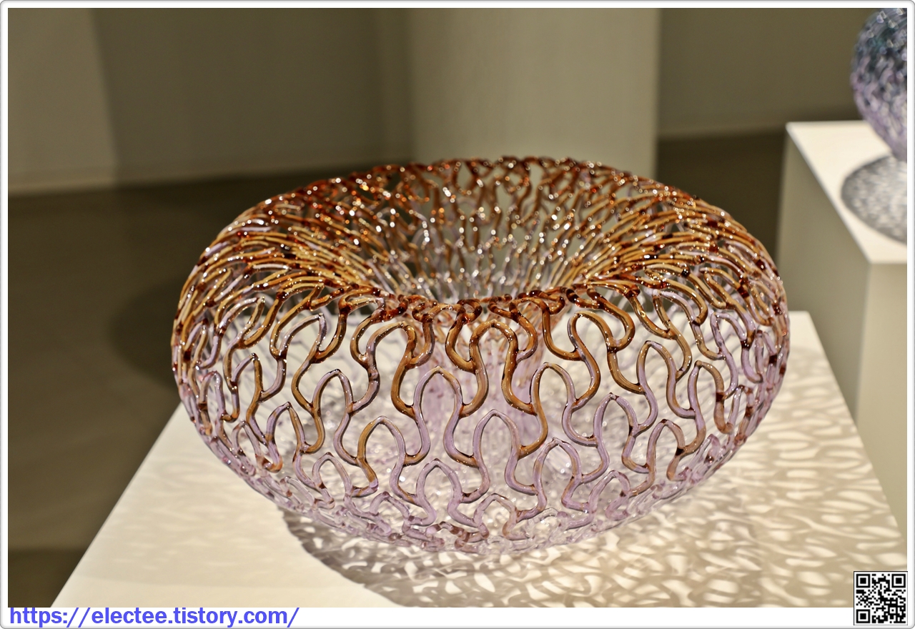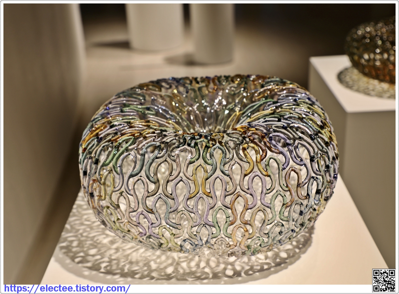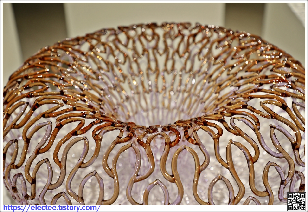 유리로 만든 건지 도자기로 만든 건지 자세히 알 수 없다. 전통적인 도예 기법을 현대적으로 재해석한 작품이다.