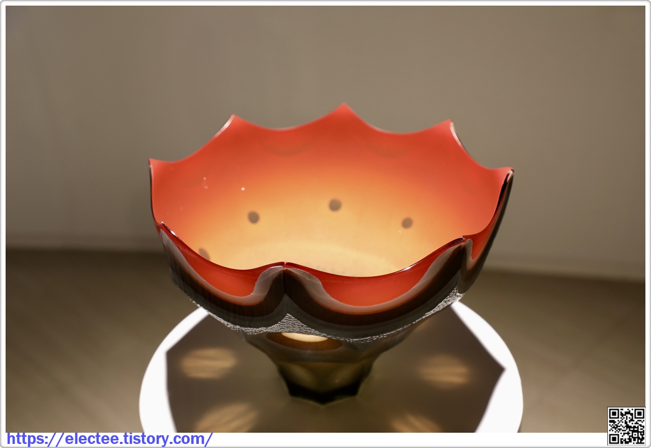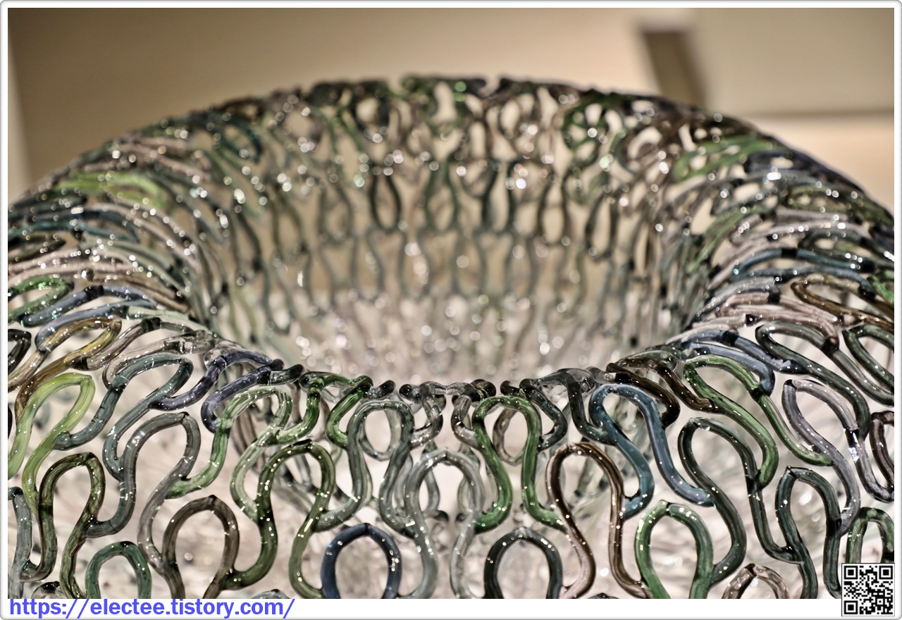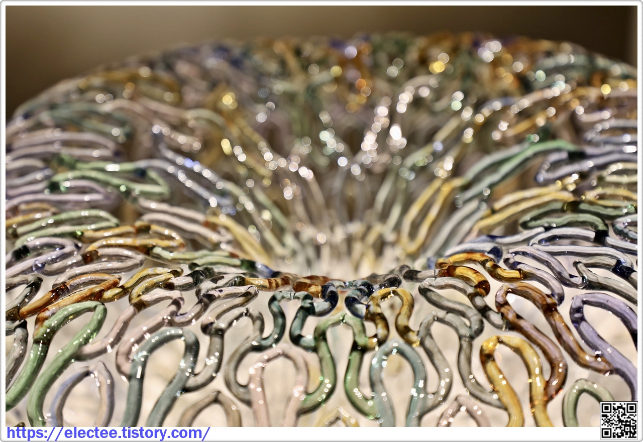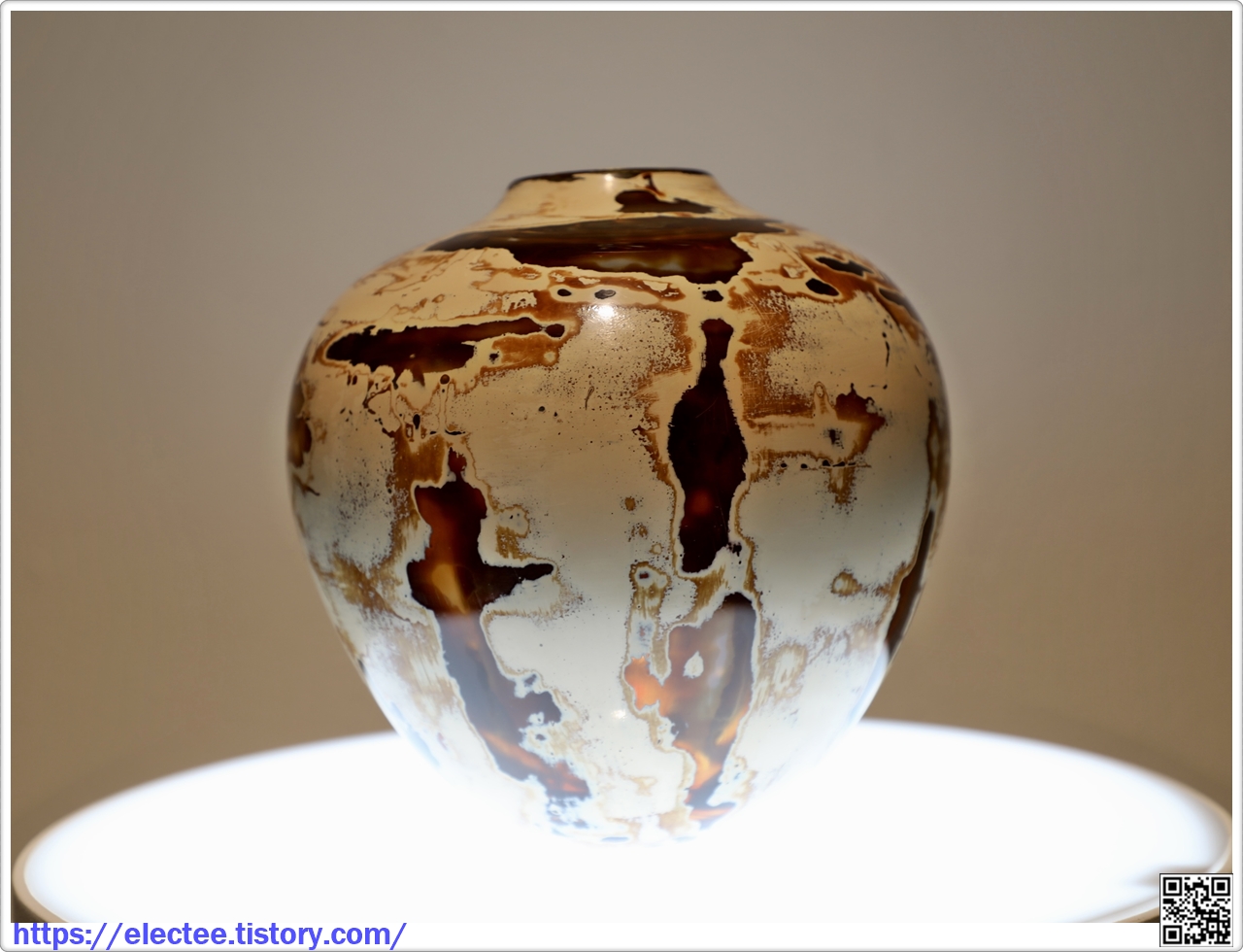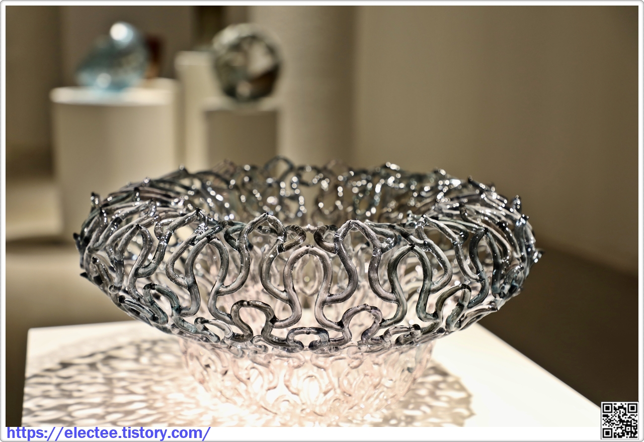 유리로 만든 건지 도자기로 만든 건지 자세히 알 수 없다. 전통적인 도예 기법을 현대적으로 재해석한 작품이다.