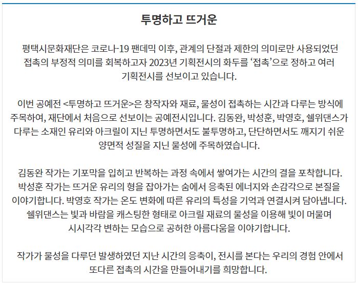 2023. 10. 20. (금) - 11. 11. (토)까지 평택북부문화예술회관 전시실에서 열리는 이번 작품은