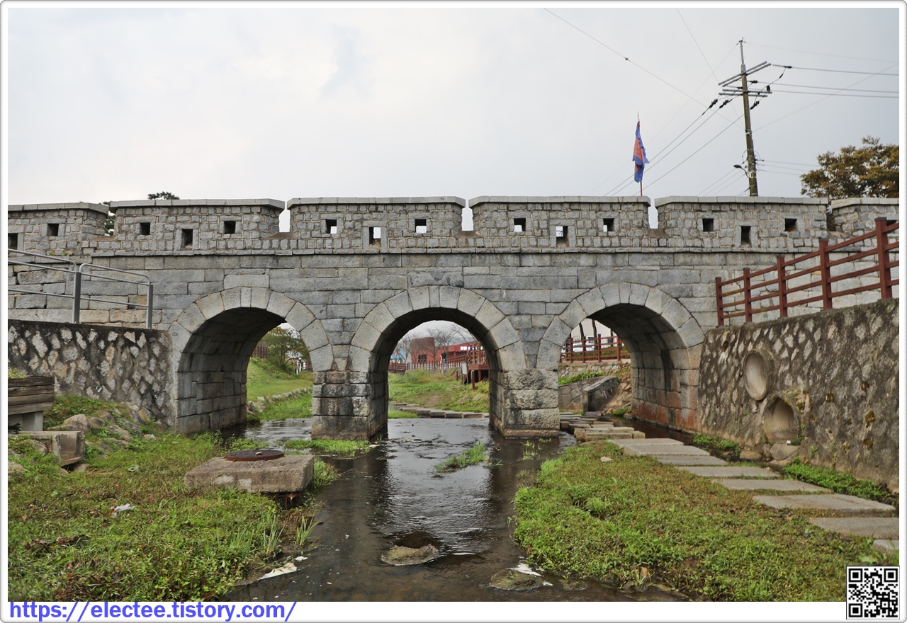 길이 18.2m, 높이 2.7m, 폭 4.7m이다. 무지개 모양의 수문이 3개이며 화강암을 다듬어 쌓았다.
