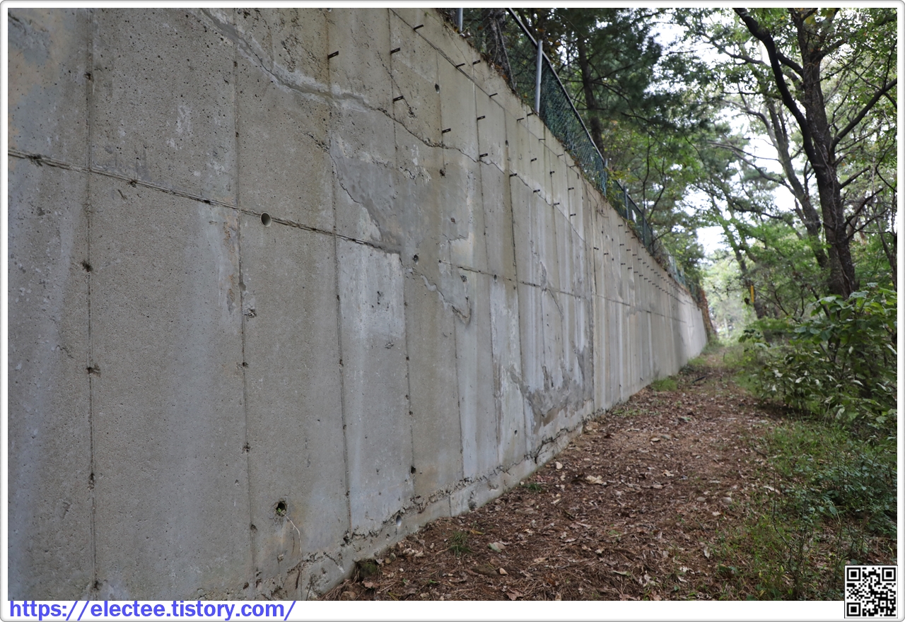 무슨 용도로 콘크리트 담장을 쌓았는지 모른다. 길이 막혔으니 담장을 따라 이동한다.