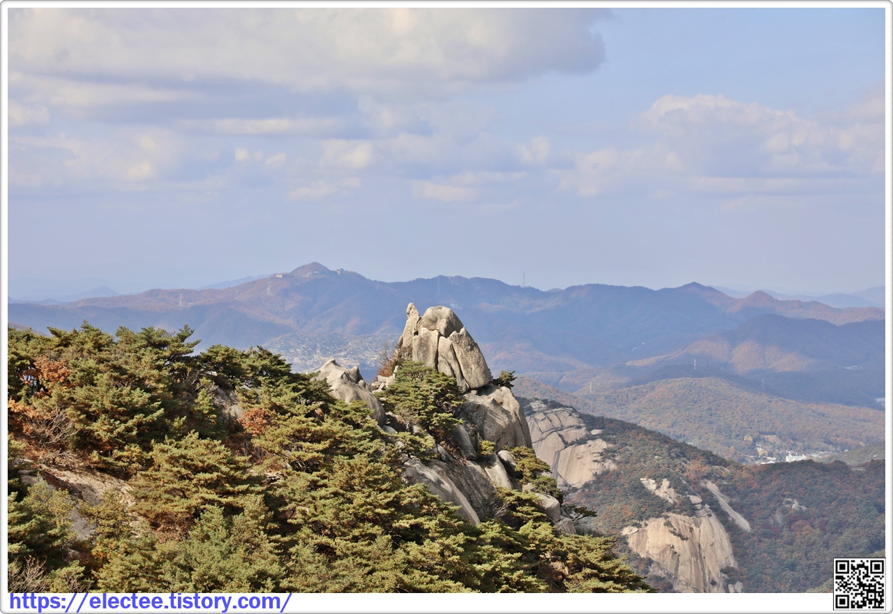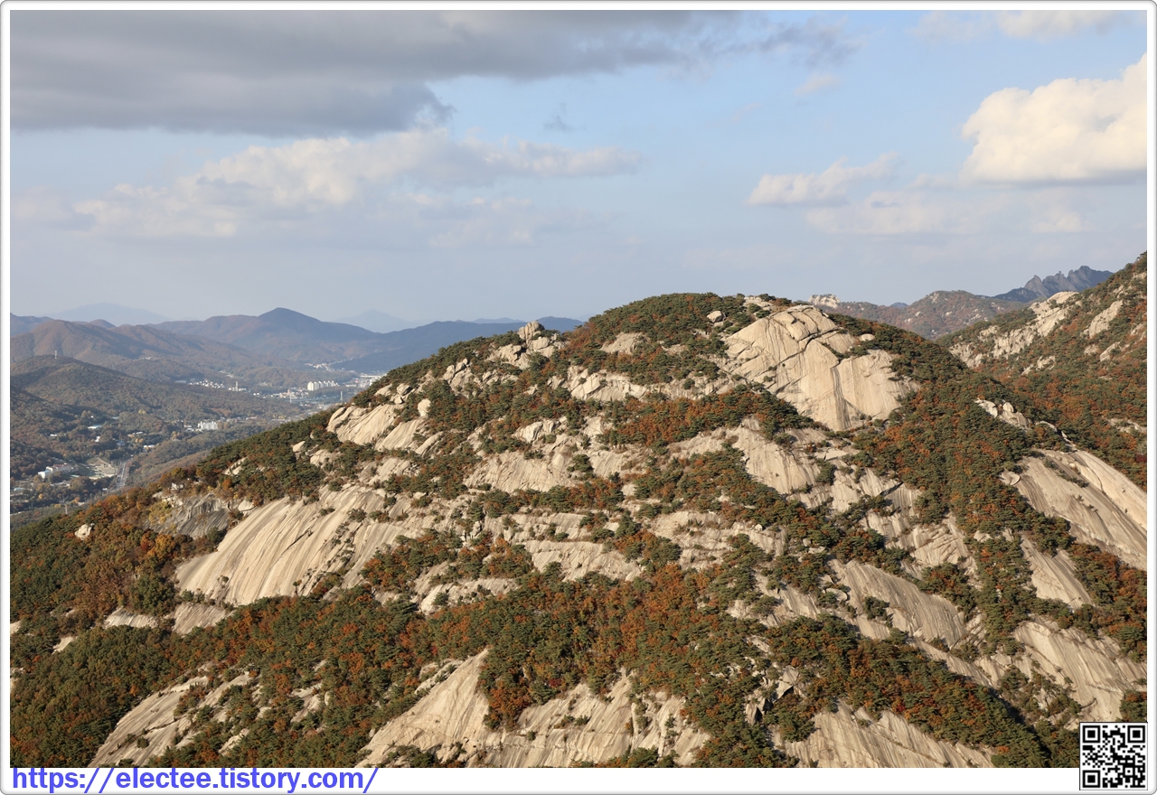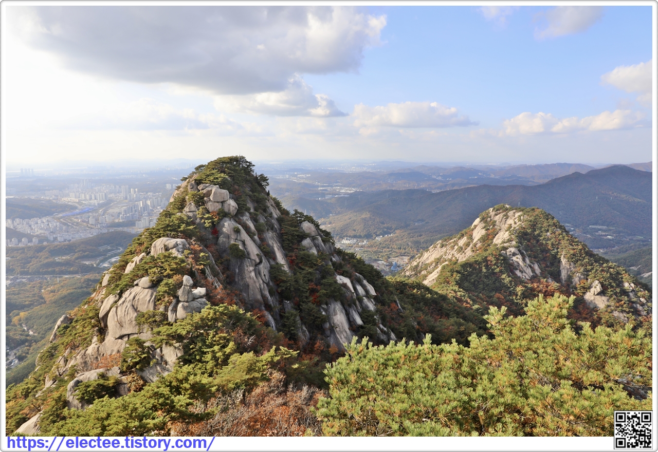 2023_193 A 2023. 10. 27. (금) 08:45~17:27, 8시간 43분 탐방, 휴식 1시간 48분 포함, 14.6km 이동 2009년 산행을 처음 시작할 땐 언제나 북한산과 도봉산, 좀 더 넓히면 수락산과 사패산, 관악산에 들었다. 주말
