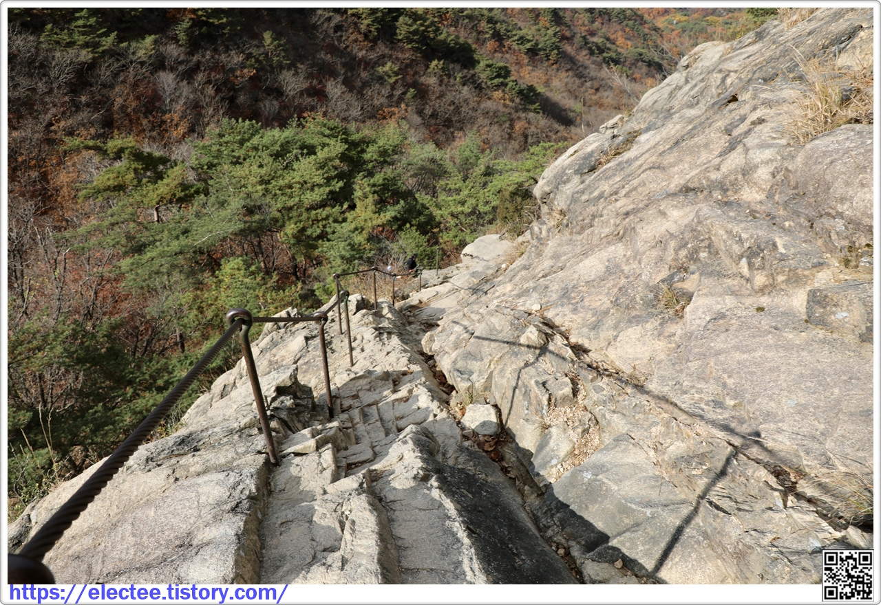 결국 처음 길로 접어들며 이 와이어로프 구간이 보이자 제대로 길을 찾았단 생각에 안심한다.