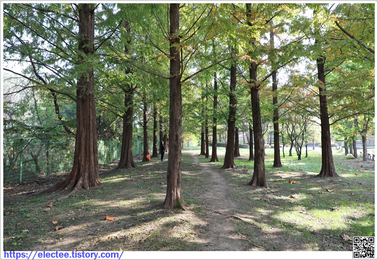 서호공원의 국철 1호선 주변엔 메타쉐콰이어 나무가 즐비해 여름엔 이곳으로 걸으면 햇빛을 받을 일이 없다.