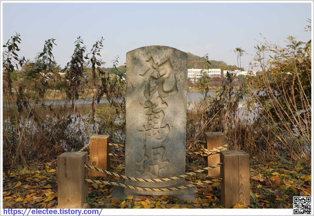 이 저수지가 바로 축만제로 그때 사용하던 둔전은 지금 '국립식량과학원'의 중부작물부에서 이 지역에 맞는