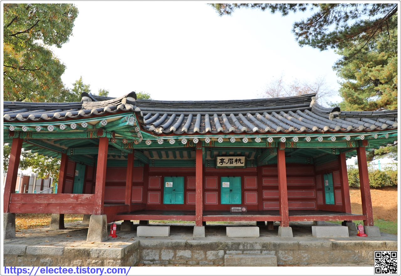 도착하여 축제 둑길을 지나 항미정에서 차를 마시며 잠시 쉬었던 유서 깊은 정자이기도 하다.