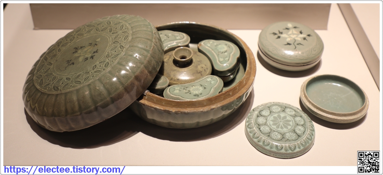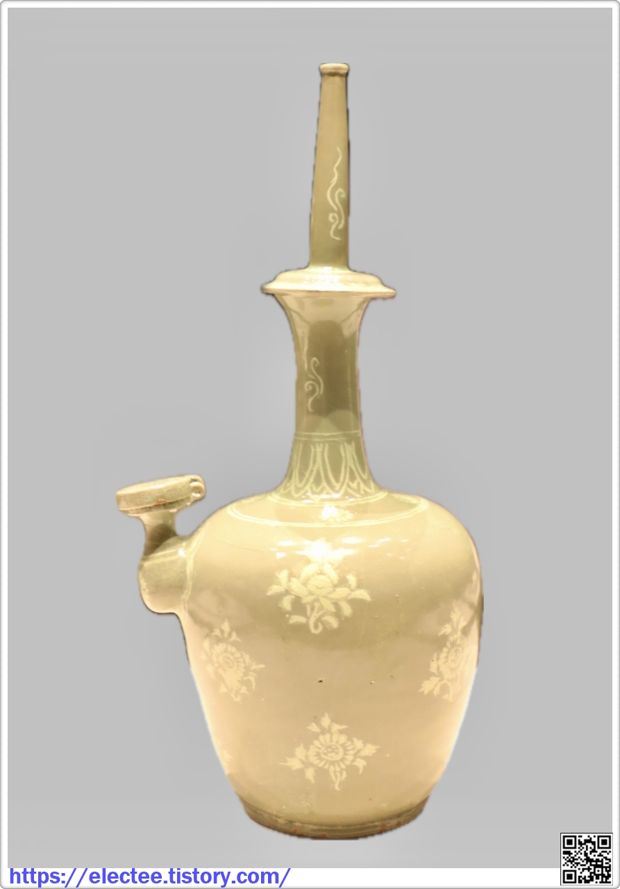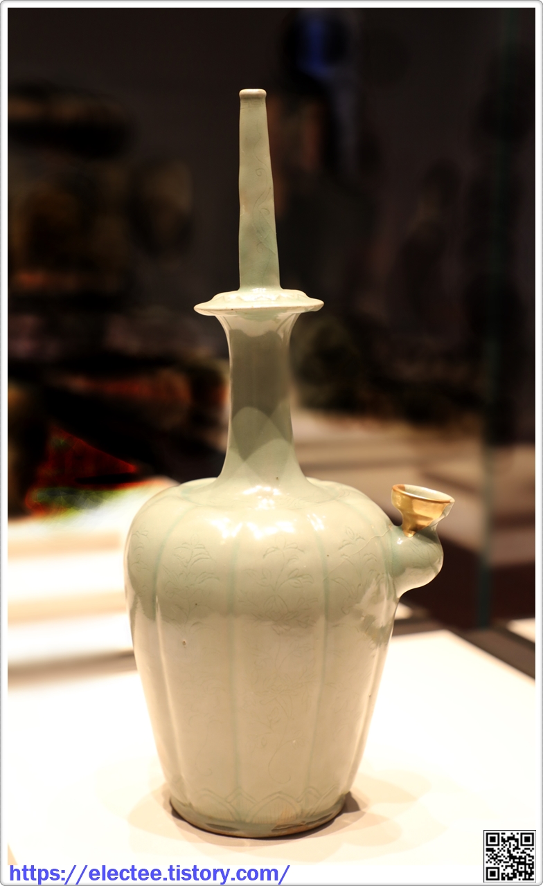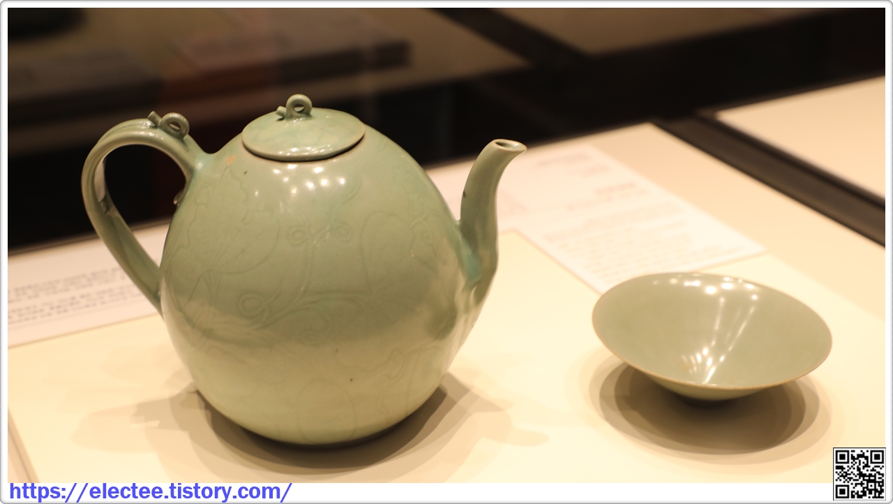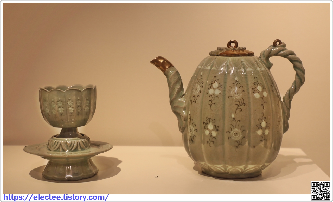 청자잔과 잔받침 青磁 黑白象嵌 菊花文 盞托 청자 참외모양 주전자 靑磁 黑白象嵌菊花文 瓜形 注子