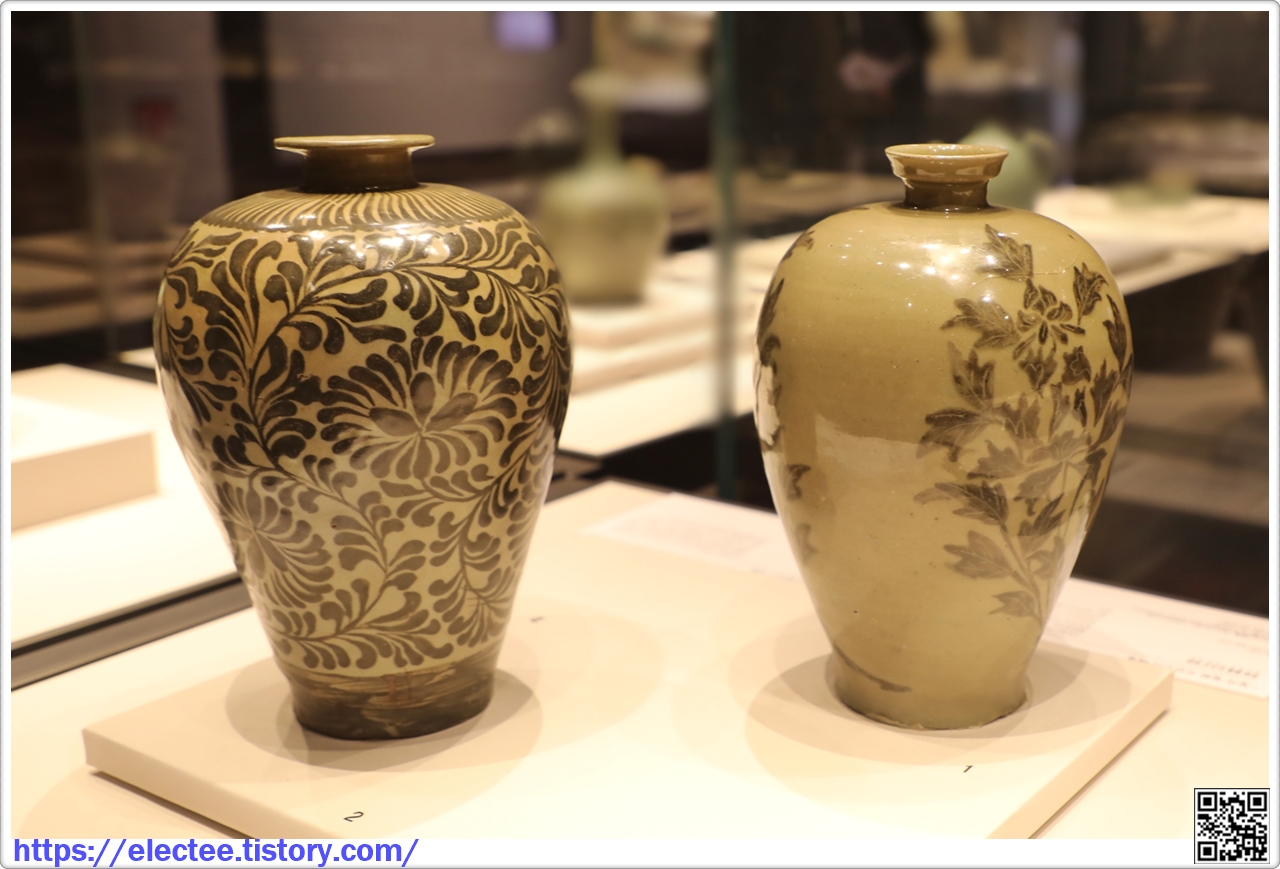 청자철화 국화넝쿨무늬 매병 青磁 鐵畵 菊唐草文 梅瓶 (왼쪽)