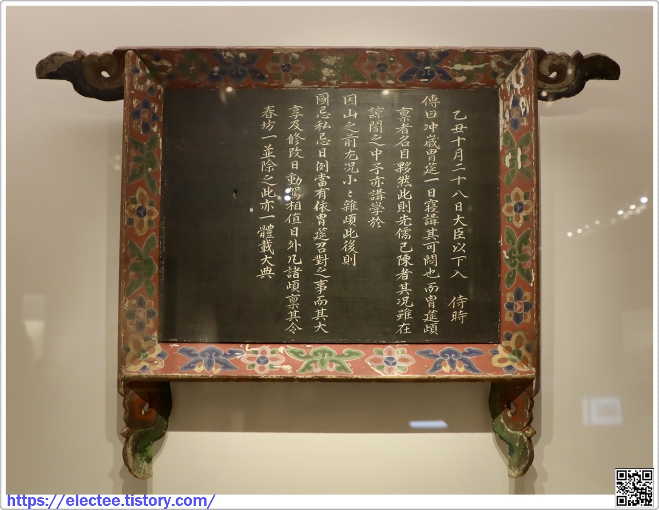 세자시강원에 걸렸던 현판 중 하나로, 영조英祖(재위 1724-1776)가 강의를 자주 건너뛰는 세자를 훈계하는 내용