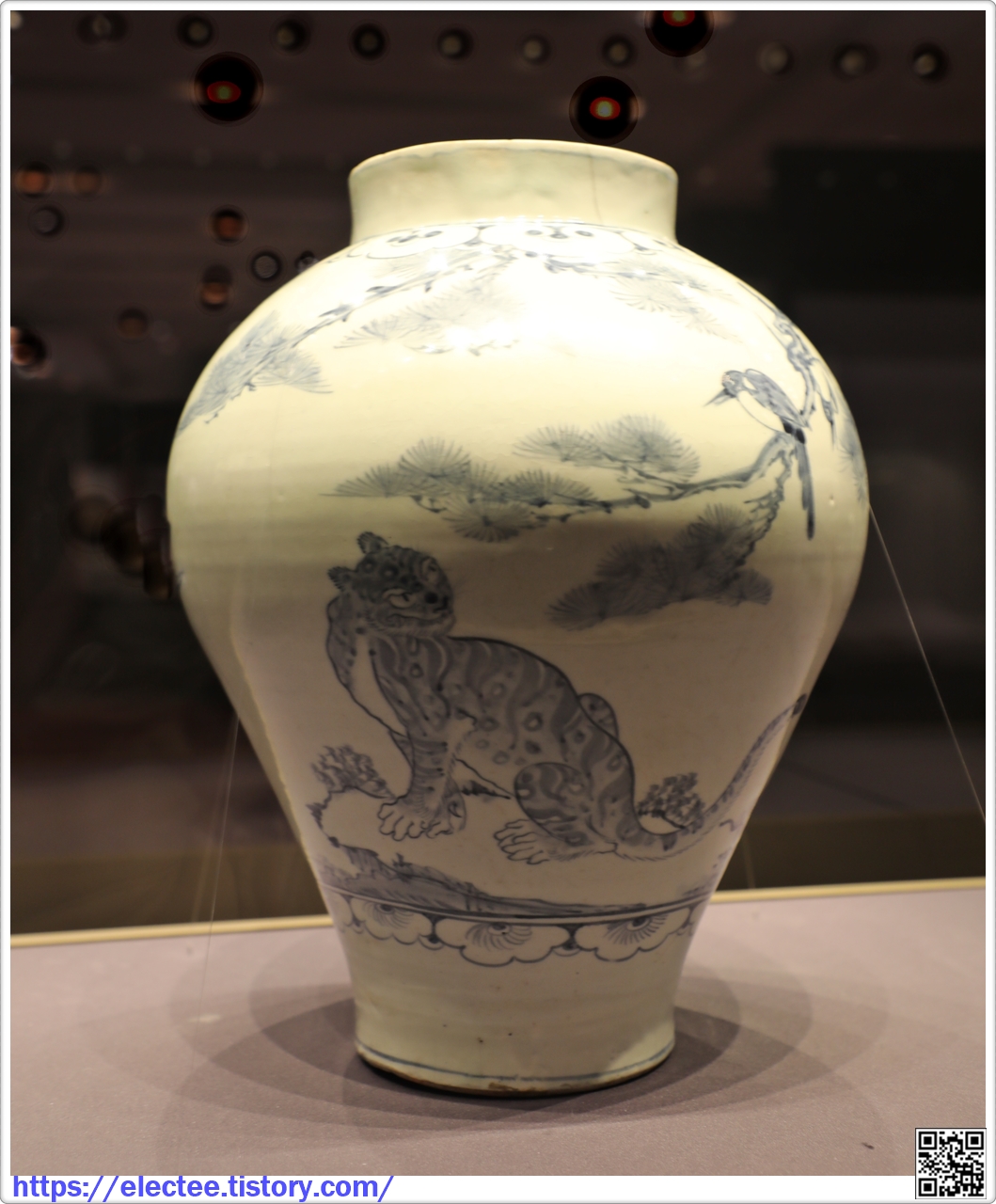 소나무 호랑이 까치무늬 항아리 白磁靑畫松下虎鵲文壺