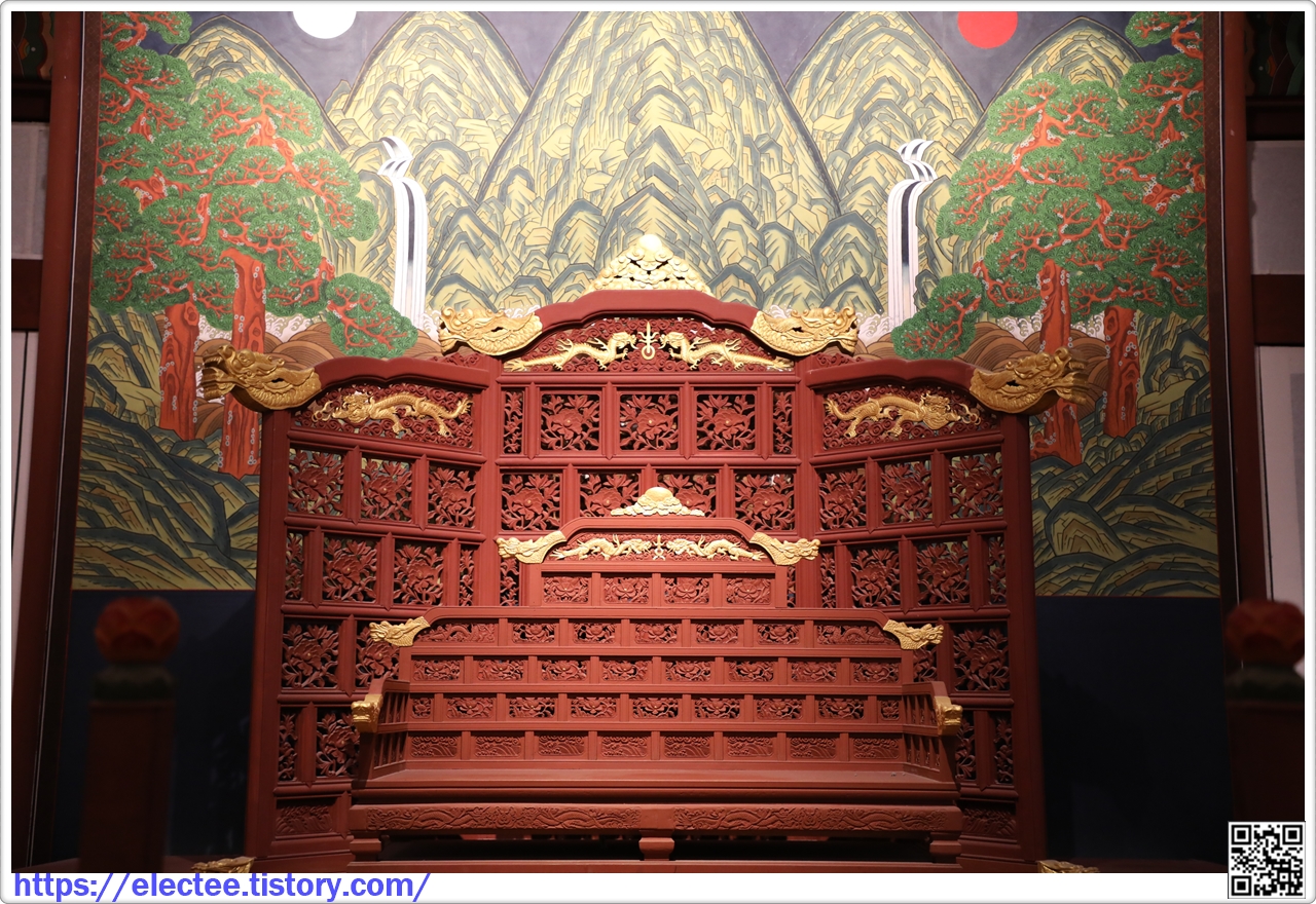 조선관에 들어오면 제일 먼저 만나는 게 임금의 자리인 용상이다.