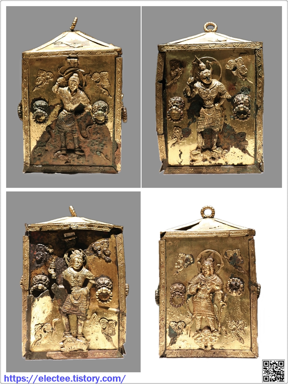 이 사리함은 사천왕이 배치된 최초의 사리구이며 탑을 든 북방 다문천왕을 중심으로 방위를 결정한다.