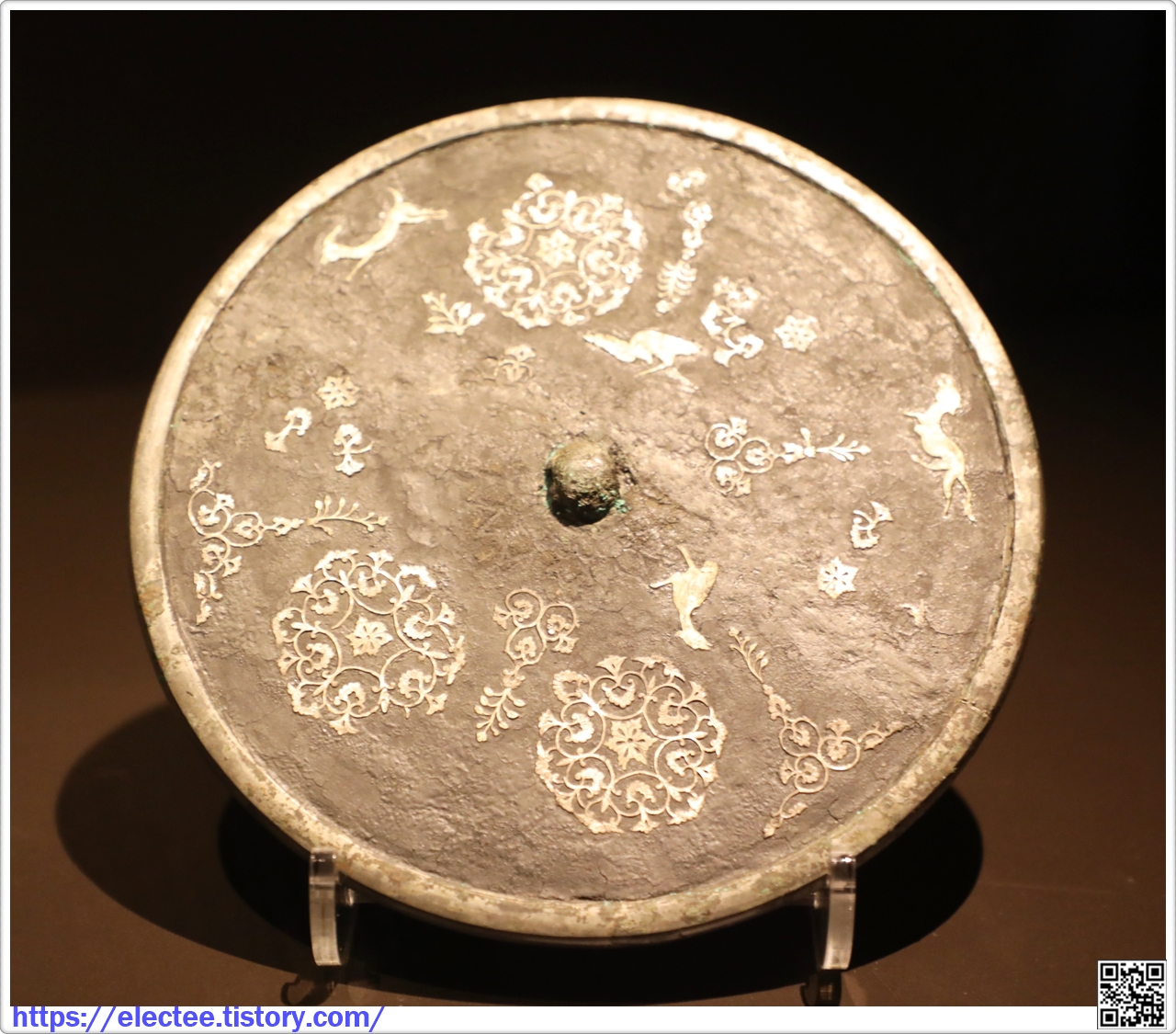 꽃·동물무늬를 붙인 거울 青銅 金銀平脫 寶相華文 鏡(청동 금은평탈 보상화문 경)