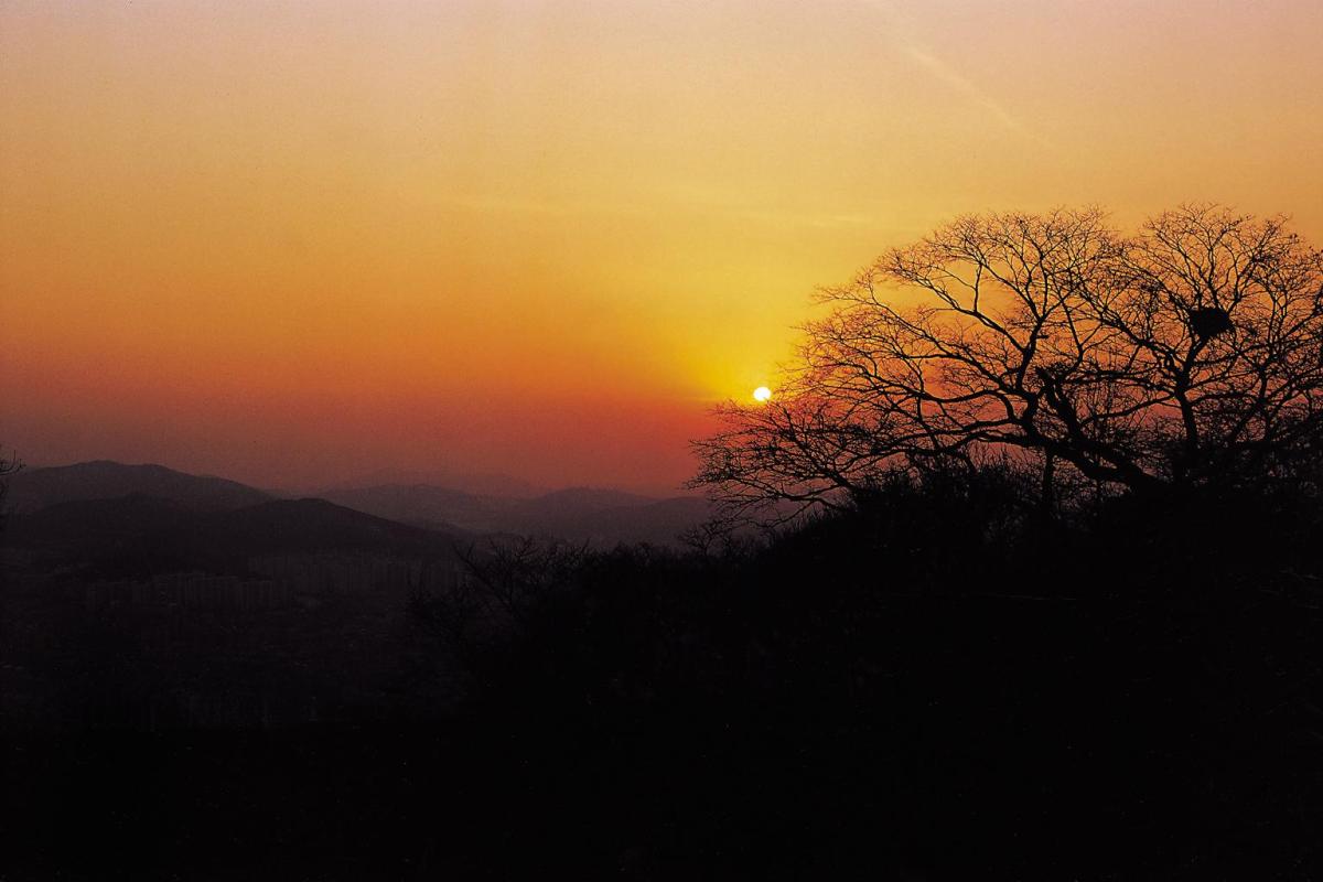 관악산이나 삼성산의 산줄기가 안양유원지로 내려서면 비봉산이 가로로 막아서며 대든다.