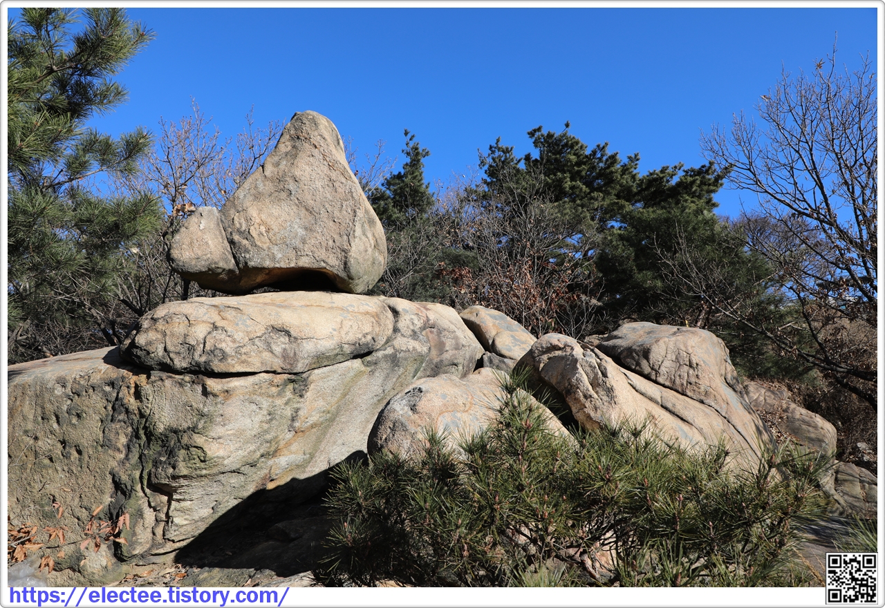 오늘 산행을 통틀어 가장 벗진 바위다.