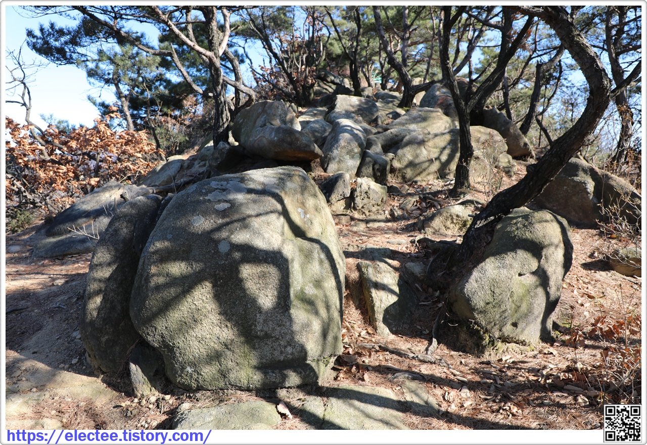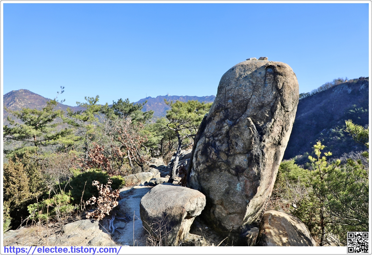올라가 봐도 특별할 것도 없는 바위가 나타나며 여기서 비봉산 전망대 방향을 조망한다.