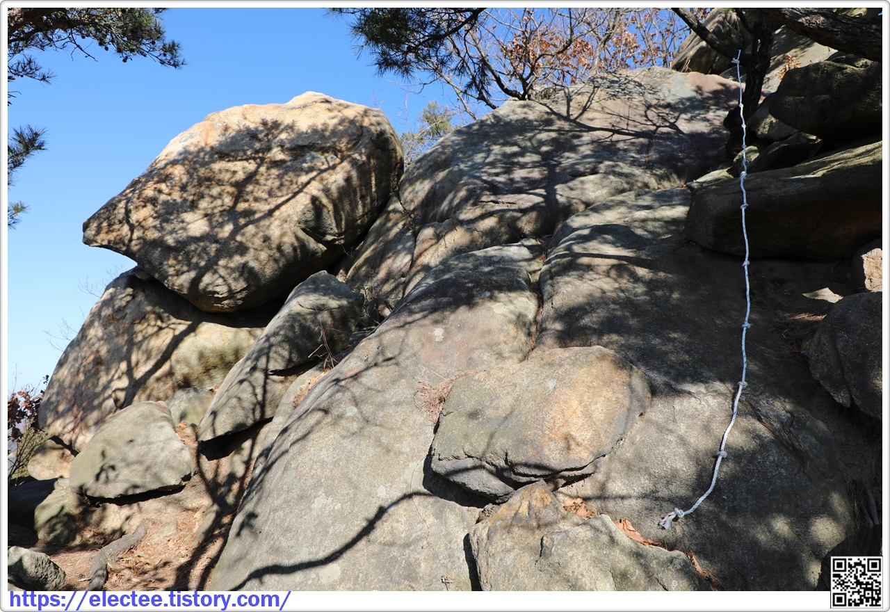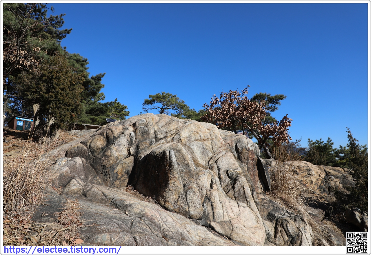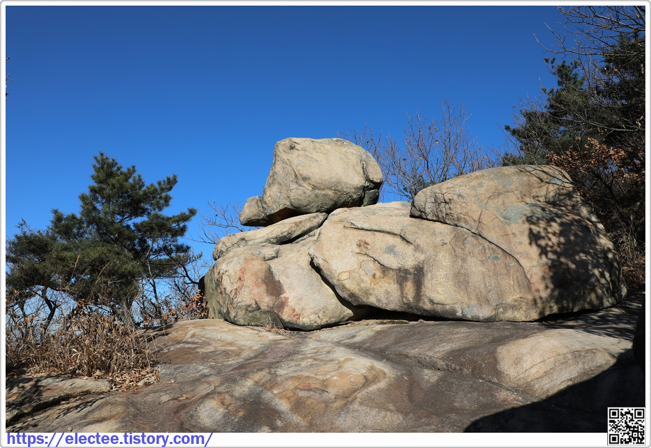 오늘 산행을 통틀어 가장 벗진 바위다.