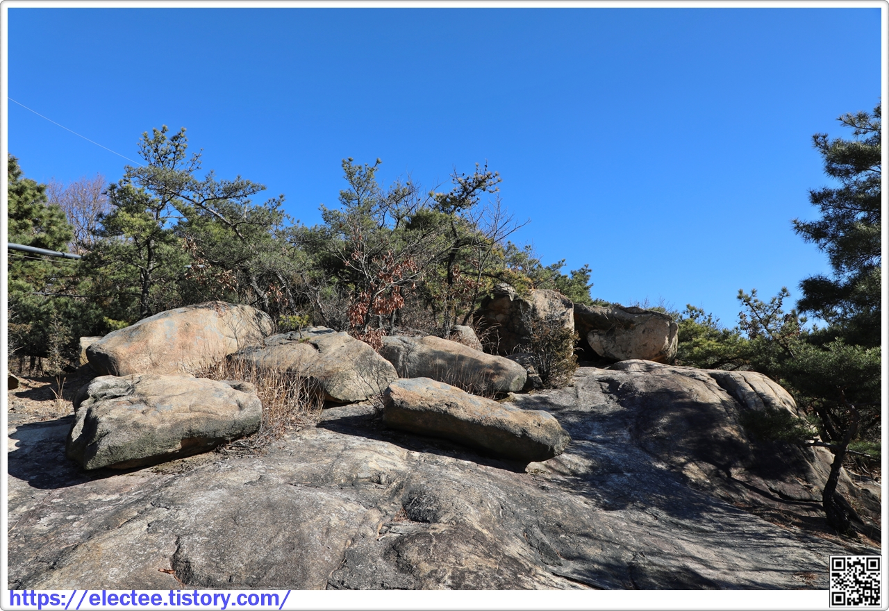 올라가 봐도 특별할 것도 없는 바위가 나타나며 여기서 비봉산 전망대 방향을 조망한다.