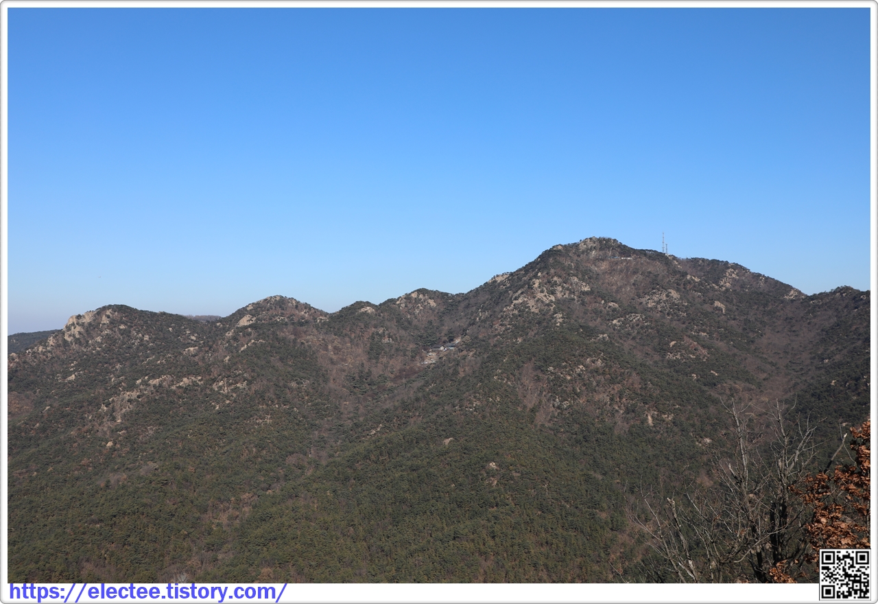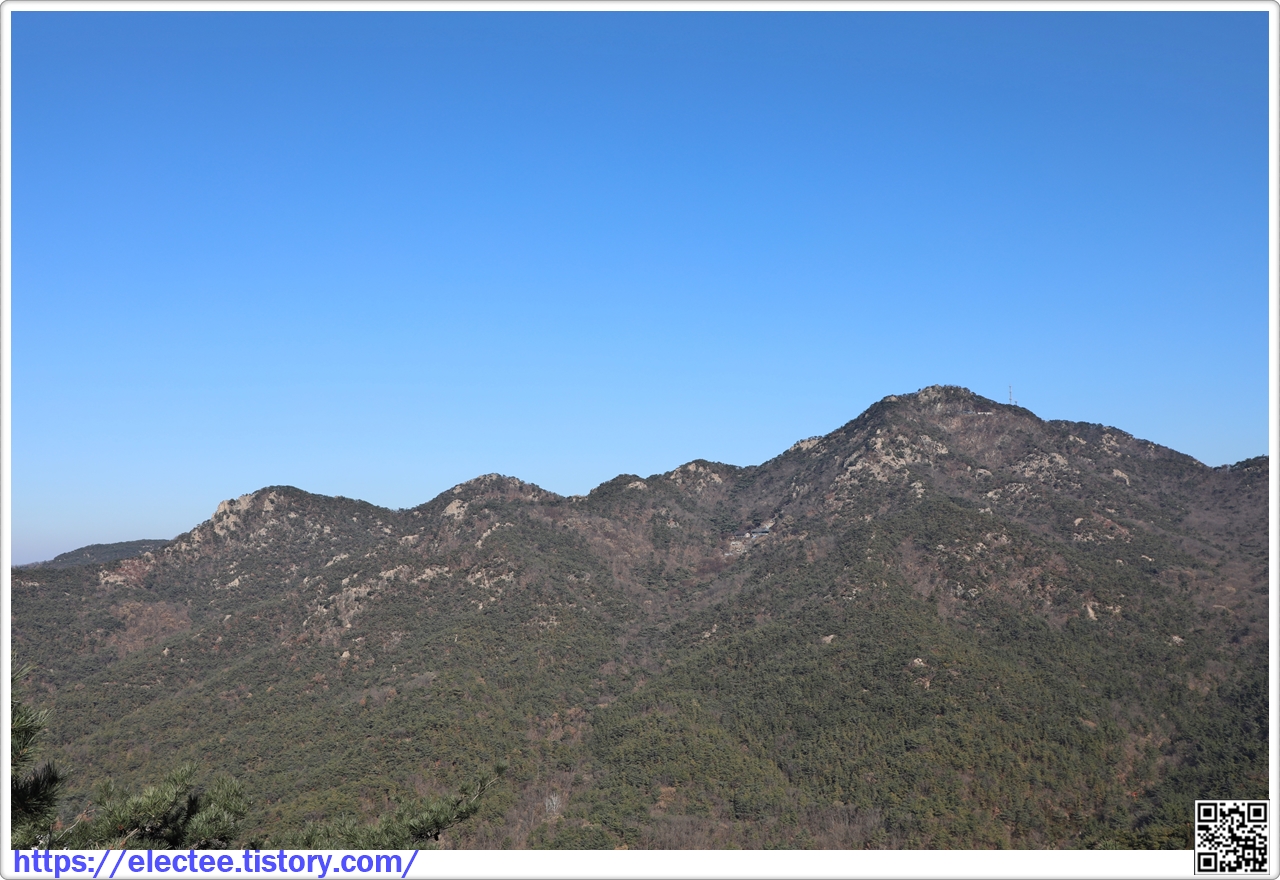 건너편 삼성산 학바위능선을 타고 오르는 삼성산 정상이 보인다.