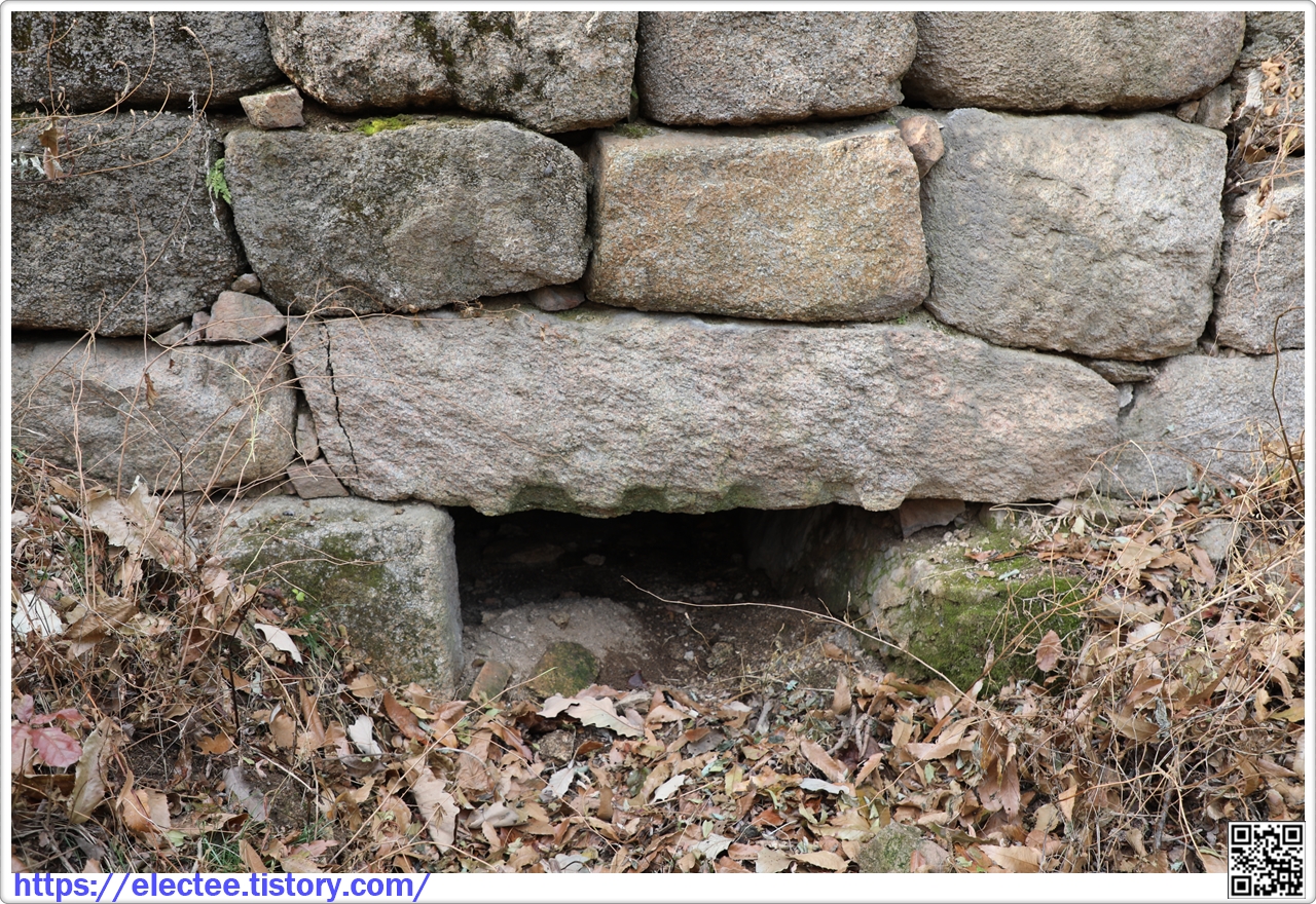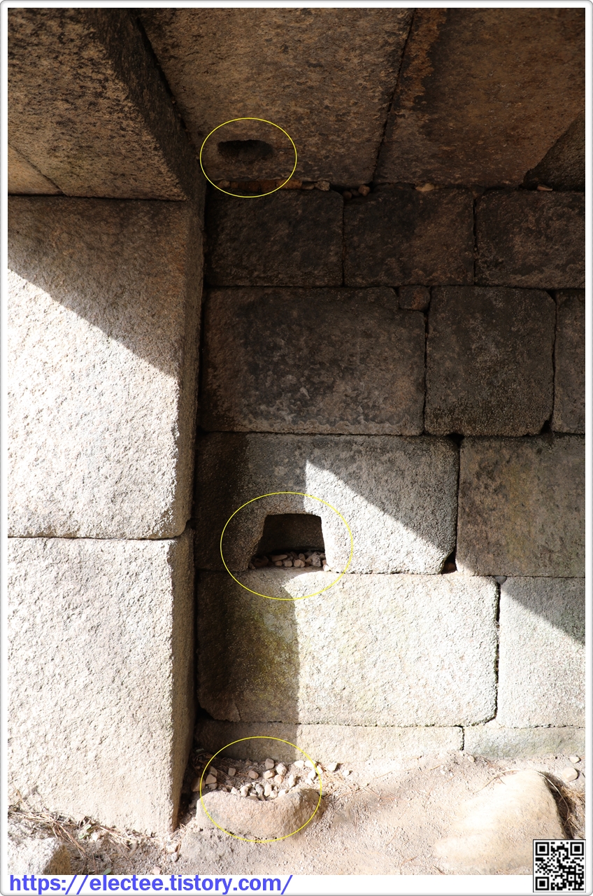 암문 안쪽에 설치된 돌확석은 상중하 세 군데에 설치되었다. 문을 고정시키고 걸 수 있는 장치다.