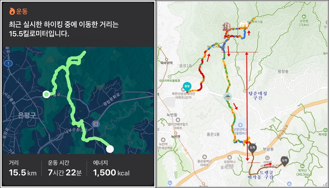 내친김에 북한산 향로봉과 비봉, 사모바위까지 돈 건 별도로 포스팅했다.