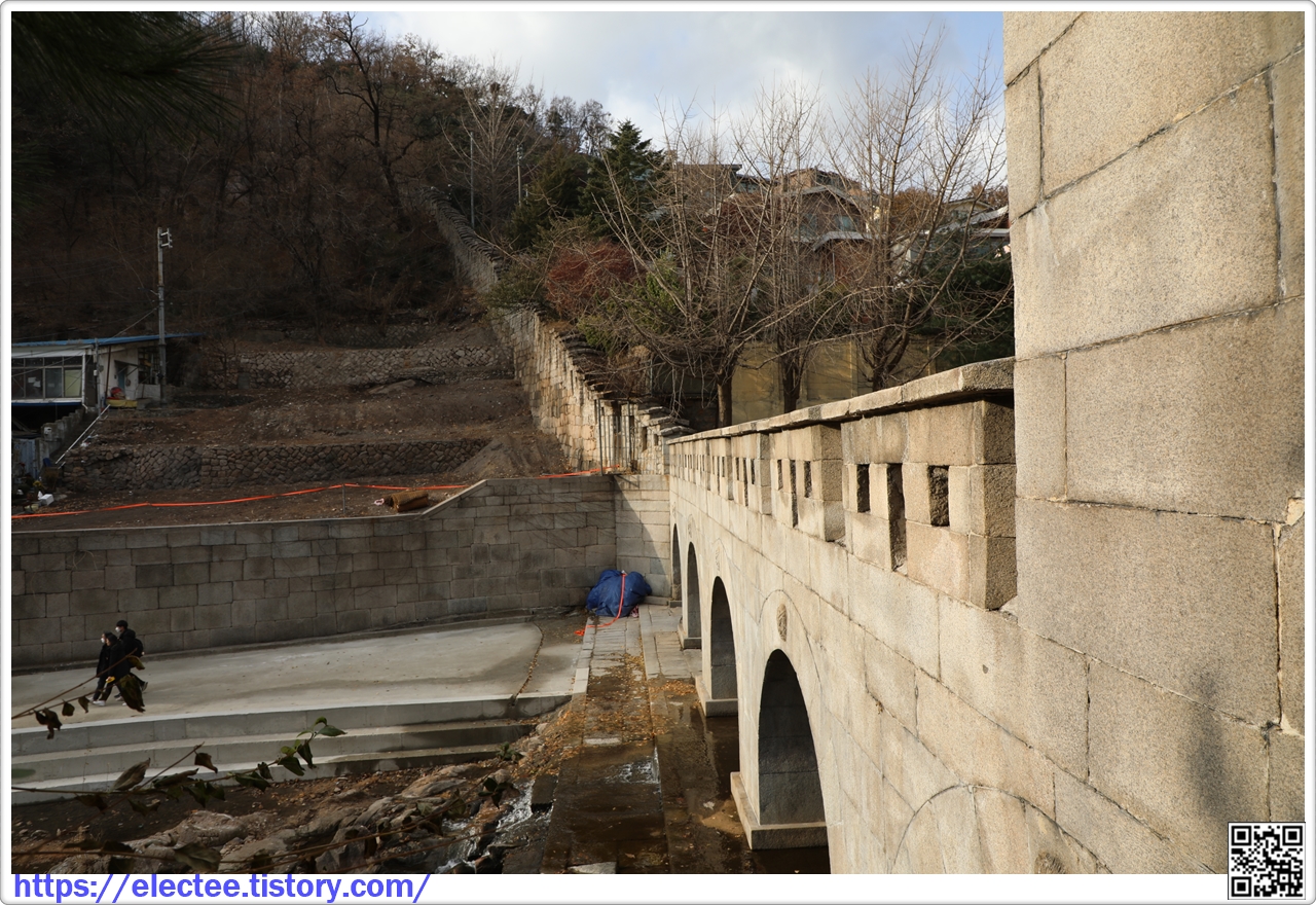 홍제천 인근에서 갑자기 성벽을 복원하며 여장까지 쌓았다.