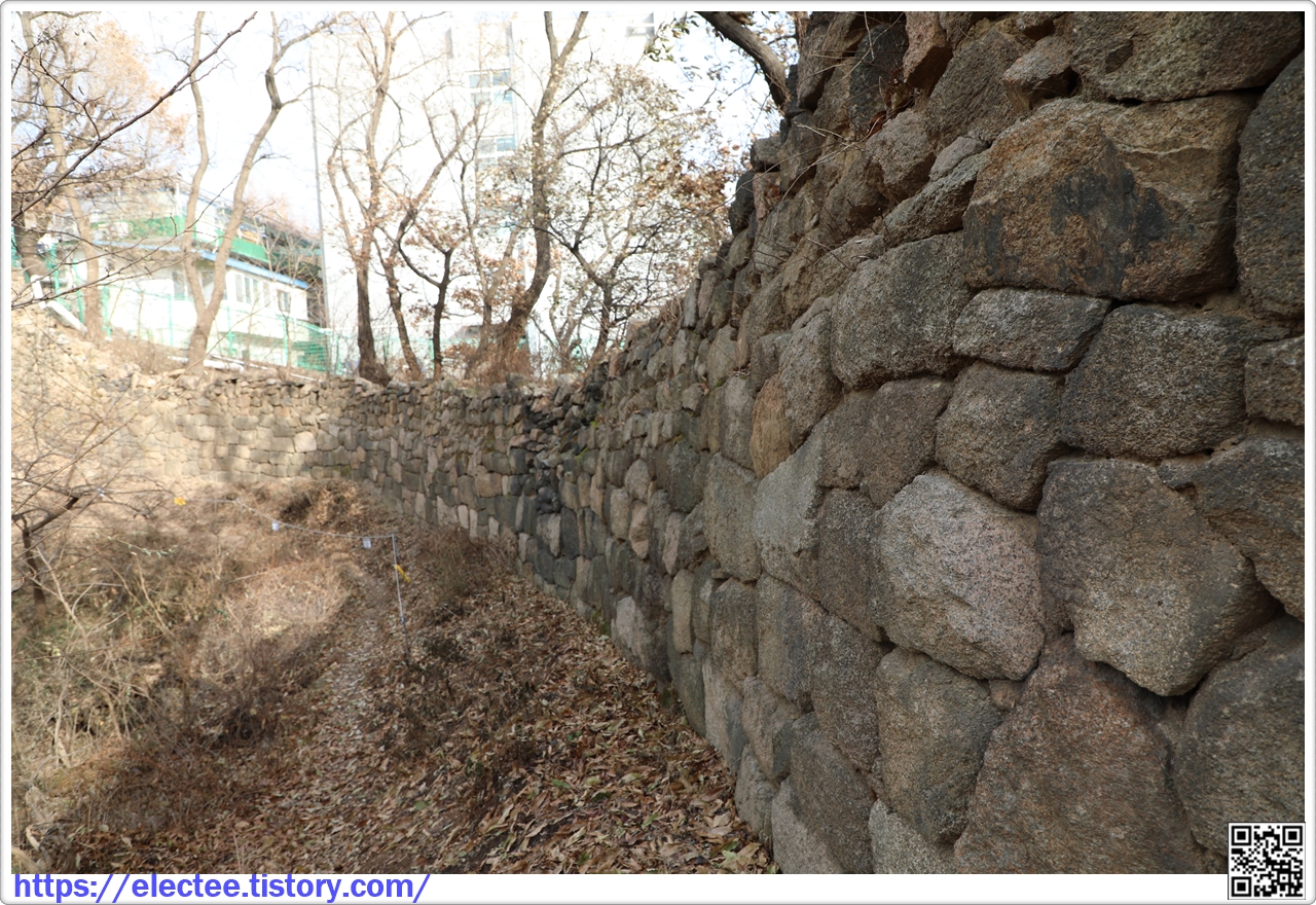 홍제천과 만나는 지점의 성벽에 덧댄 여장은 온전이 석성이다.