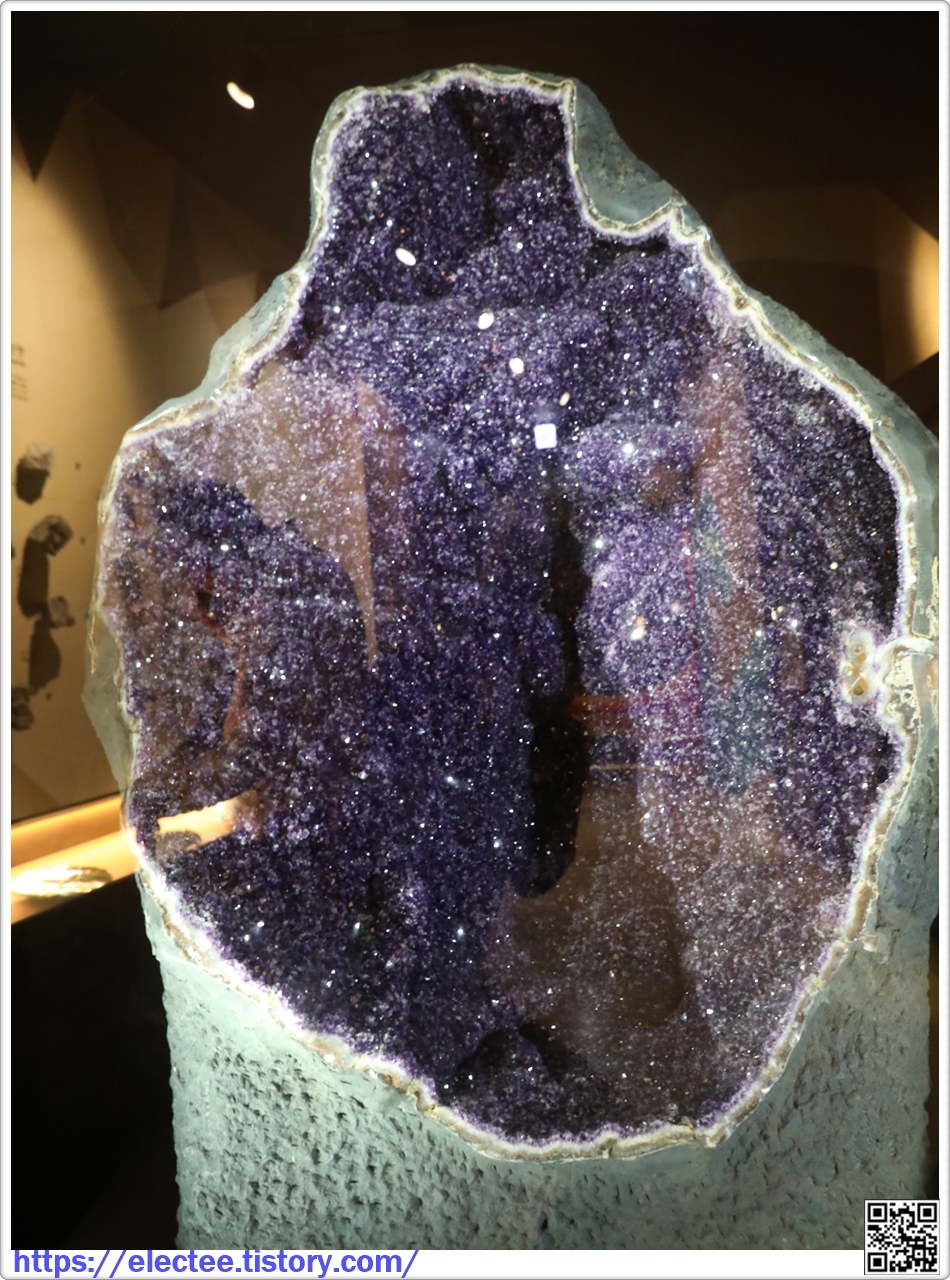 대표적인 보석광물 가운데 하나인 자수정은 고온 고압의 열수에 녹아 있던 규소집합체(SIO)와 약간의