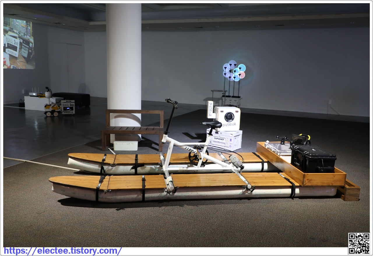 변환하여 관람객이 직접 조합하며 연주할 수 있는 이동식 자연 신시사이저개념의 작품이다.
