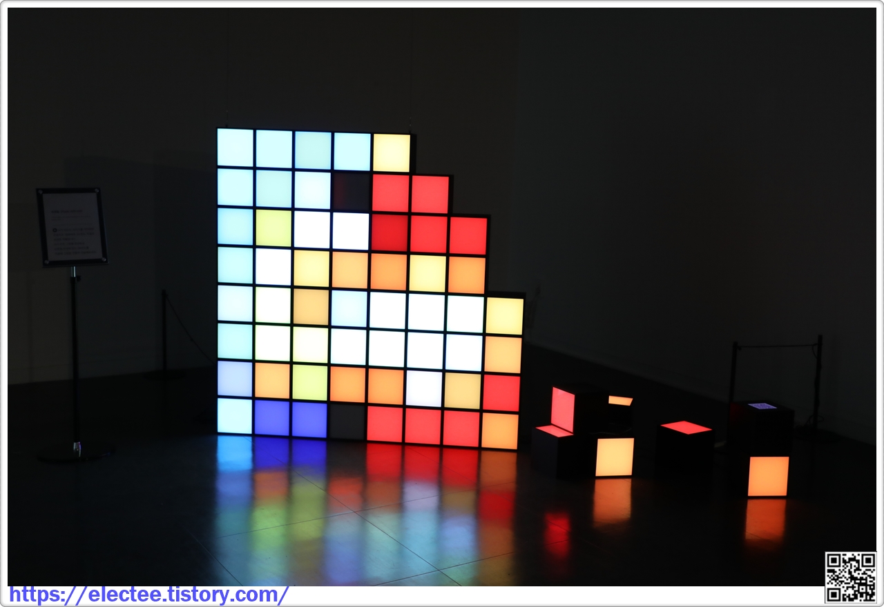 관람객은 지속적으로 바뀌는 64개의 픽셀을 통해 인공지능의 시선을 바라보며