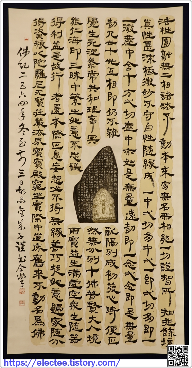 "서예는 한자를 사용하는 문화권에서 발달하였는데 대표적으로 우리나라와 중국, 일본에서 작자의 심상을 표현하는 예술 분야이자 정신수양의 수단으로 애호되어 왔습니다. 우리나라는 '서예'라는 용어를 광복 이후인 1945년부터 사용하였고, 중국은 '서법書法', 일본은 '서도書道'라고 합니다." 했다.