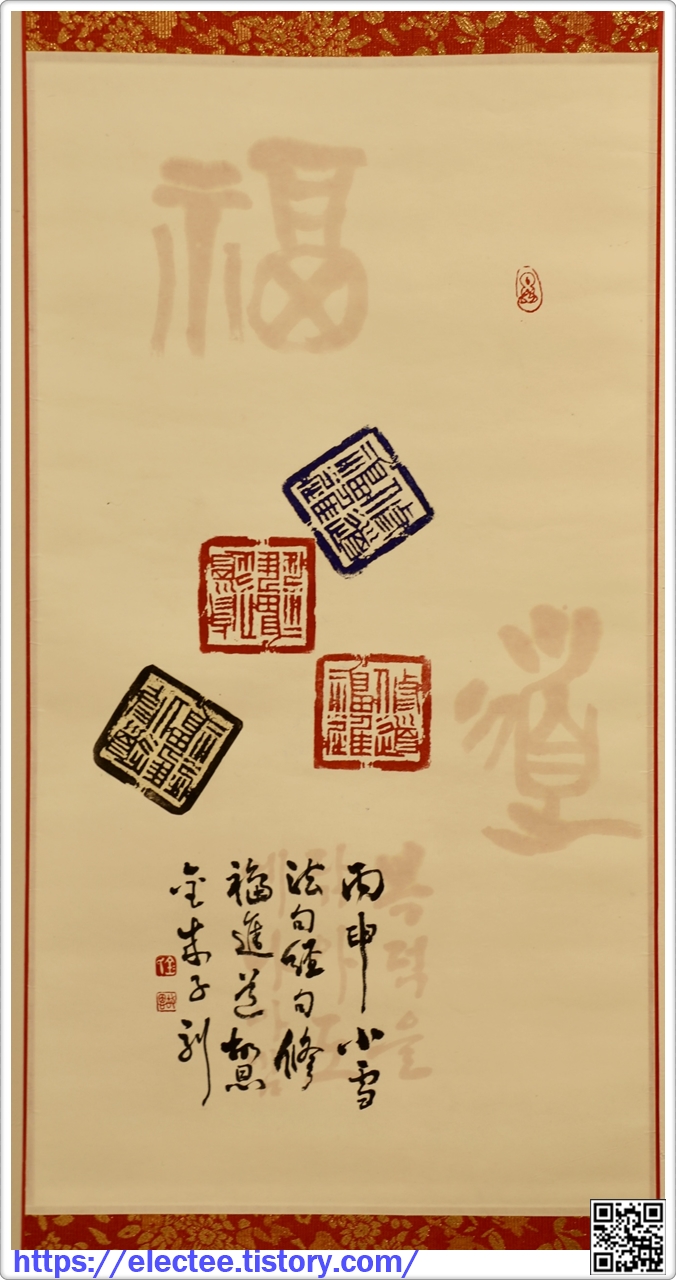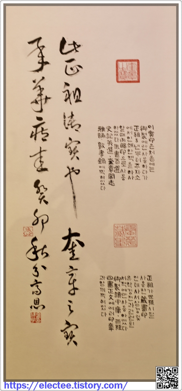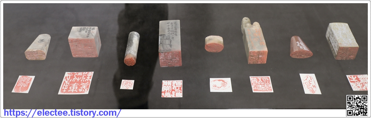 주로 낙관에 쓰이는 전각은 전서체가 많아 글자의 획이 많고 어렵다.