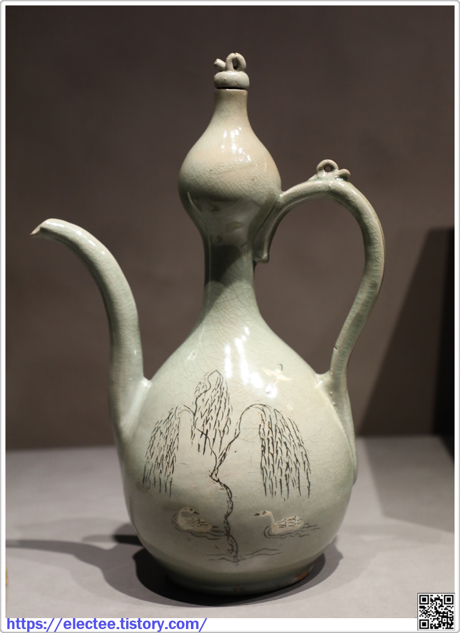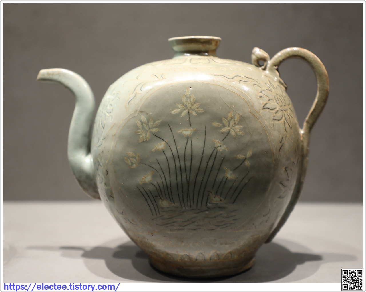 청자상감 물가풍경무늬 주자 青磁 象嵌 蓮池水禽文 注子