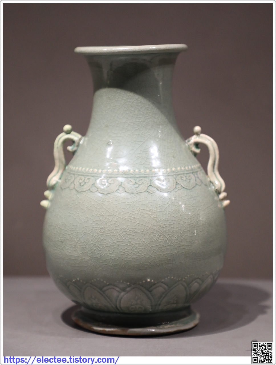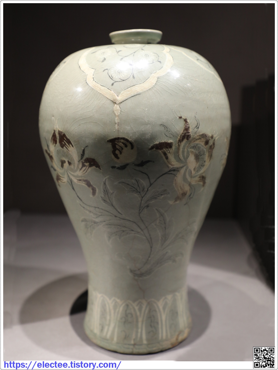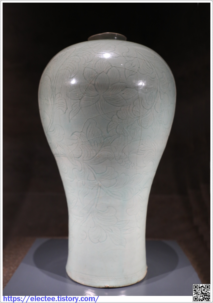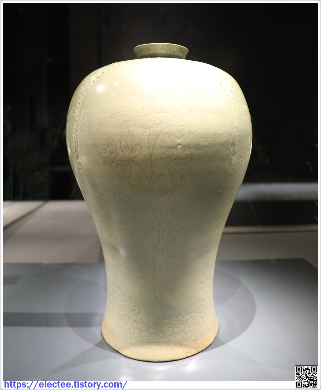 이 매병의 연꽃은 비췻빛 비색과 조화를 이루며 12세기 고려인이 추구한 미감을 보여준다.