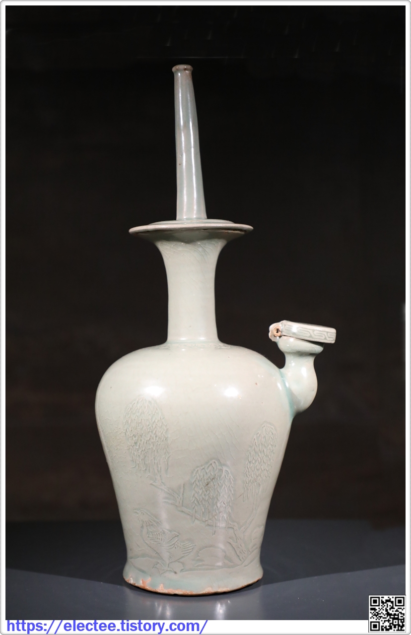 청자 양각 물가풍경무늬 정병 青磁 陽刻 蒲柳水禽文 淨瓶