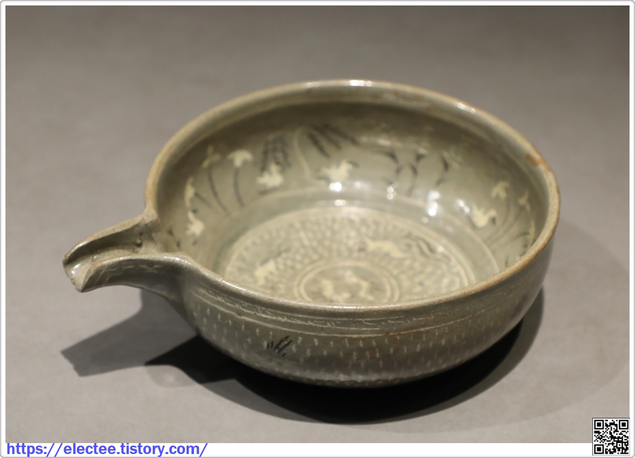 청자상감 물가풍경무늬 귀때발 青磁 象嵌 蒲柳水禽文 片口鉢