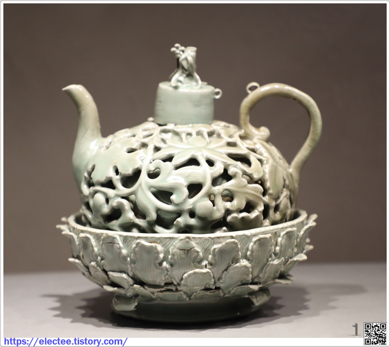 음각·양각·투각·철화·상감·철화·상형 등 청자의 모든 장식 기법을 구사하여 완성했다.