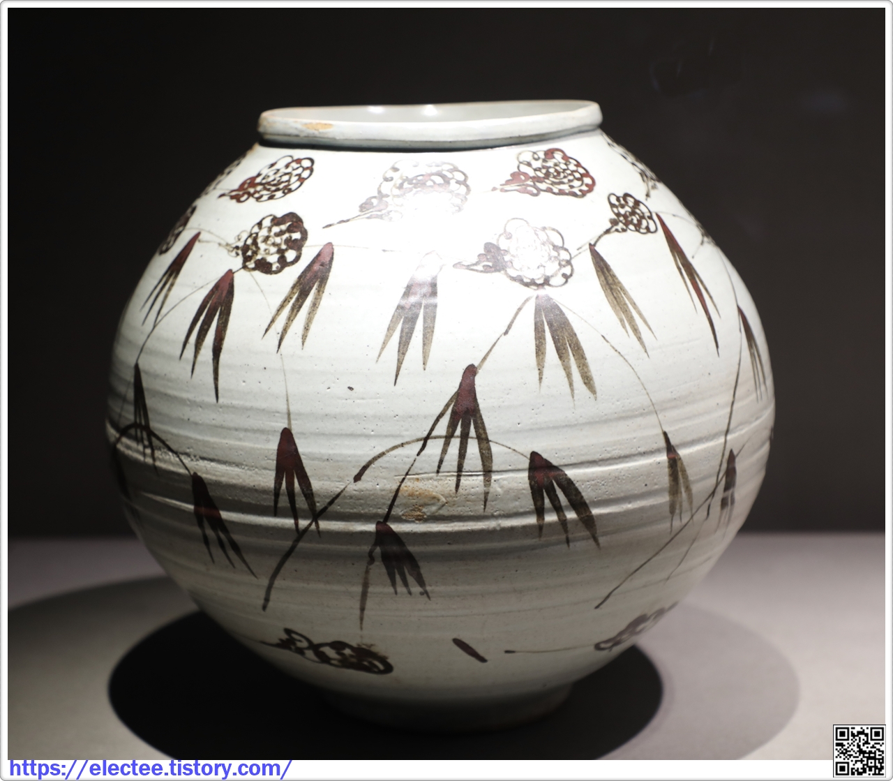 유백색 바탕에 철화 안료의 깊고 진중한 색감과 능숙한 필치가 어우러져 원숙한 세련미를 드러낸다.