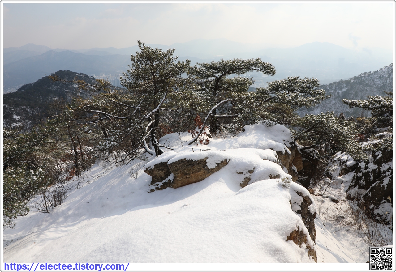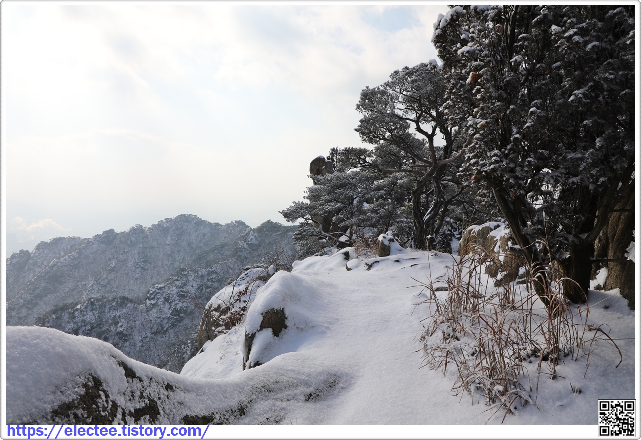 나무가 없이 맨땅이 드러난 곳은 이렇게 멋진 설경을 보여준다.