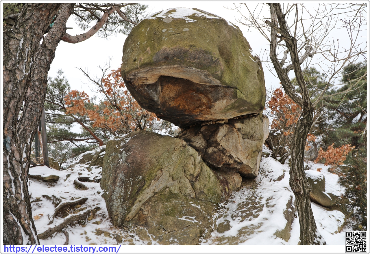 산불감시초소 아래에 있는 바위는 ㄷ 자 모양으로 특이하다.