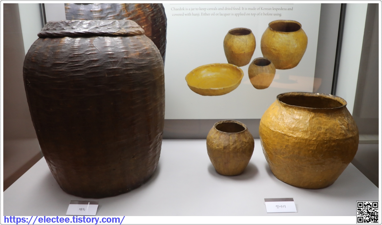 채독은 곡식이나 마른 음식을 보관하는지 항아리로 싸리나무나 두꺼운 한 지로 틀을 만든 후 한지를 바르고, 그 위에 기름이나 옻칠을 하여 사용하였다.