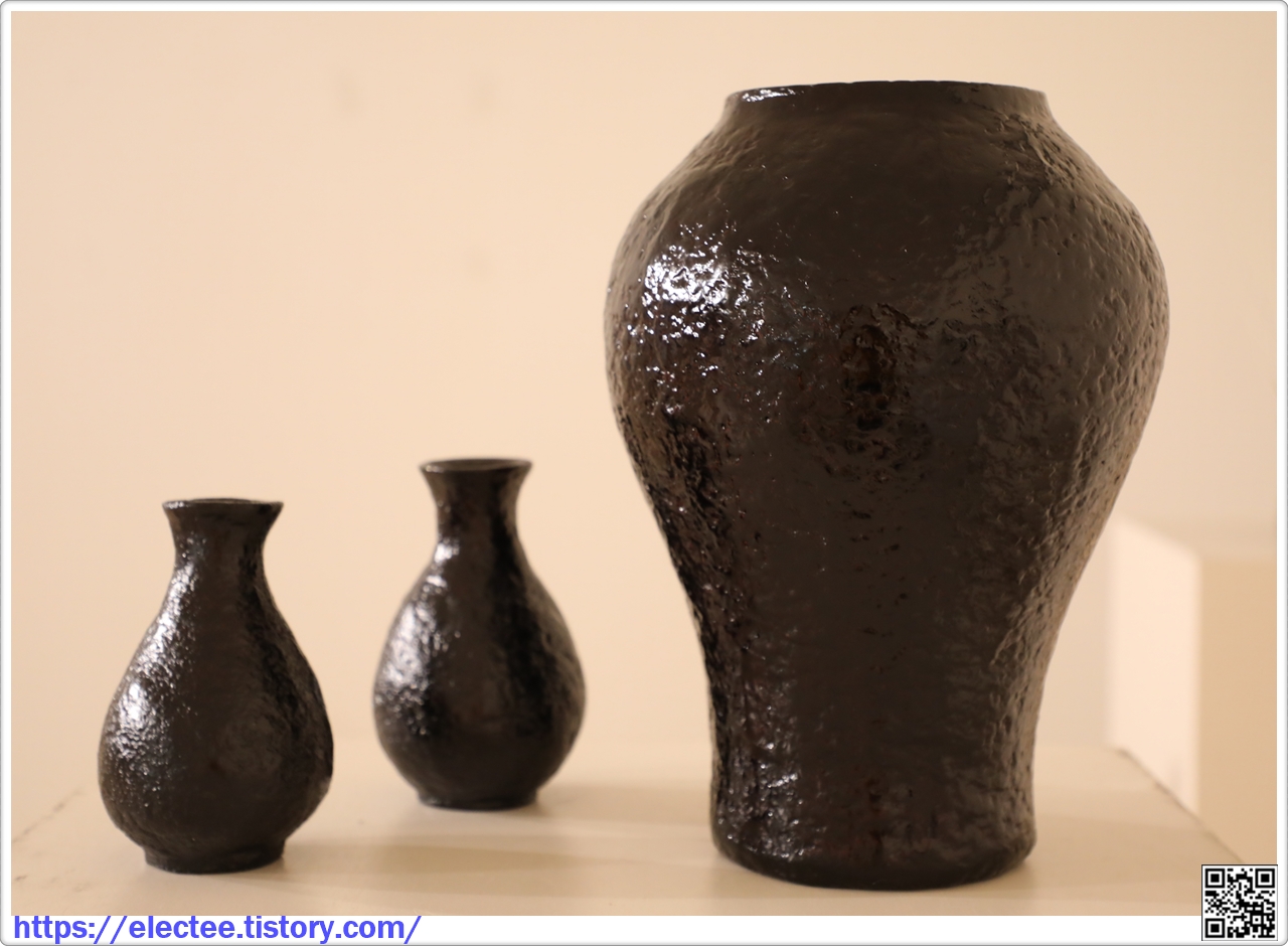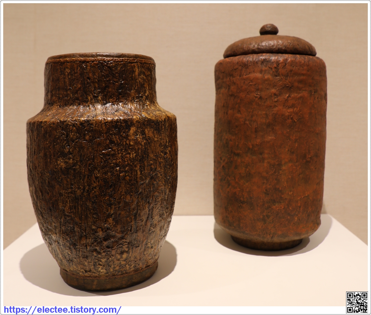 2023년 13×13×20cm(2ea), 한지, 닥축, 옻, 삼베 2013년 25×25×38cm ,한지, 닥죽, 옻, 삼베