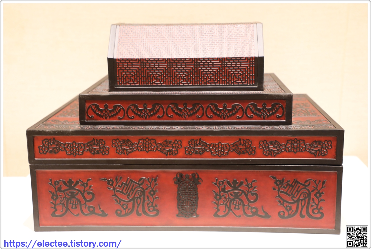 2023_221 2023. 11. 25. 토요일 오후에 관람 예은 김은희 님의 작품은 지호명인 김은자 님과 겹치지 않는 함과 장롱, 생활 전등 등에 특화된 영역이다. 같은 한지라도 이렇게 다른 영역을 개척하면 예