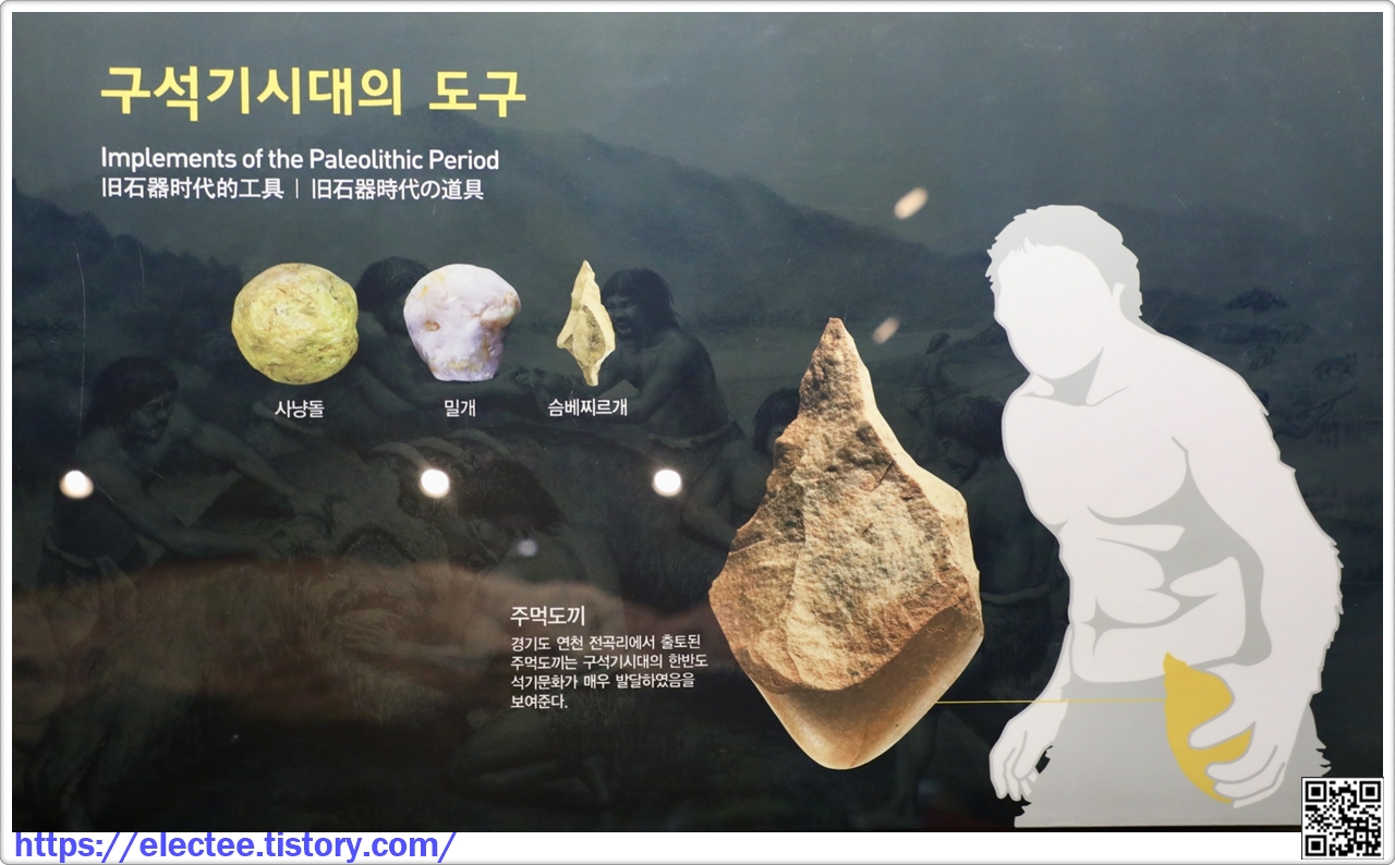 구석기시대는 인류가 처음으로 돌로 만든 도구를 사용한 시기로, 우리나라의 구석기는 약 70만 년 전부터 시작된 것으로 추정된다. 구석기인들은 다듬어지지 않은 뗀석기를 도구로 사용하였으며, 주로 동굴이나 강가에서 살면서 짐승과 물고기를 잡거나 채집 생활을 하였다. 특히 경기도 연천 전곡리의 유적에서는 제작기법이 상당히 세련되고 우수한 주먹도끼가 발견되어 매우 발달한 석기문화가 한반도에 있었음을 입증하게 되었다.