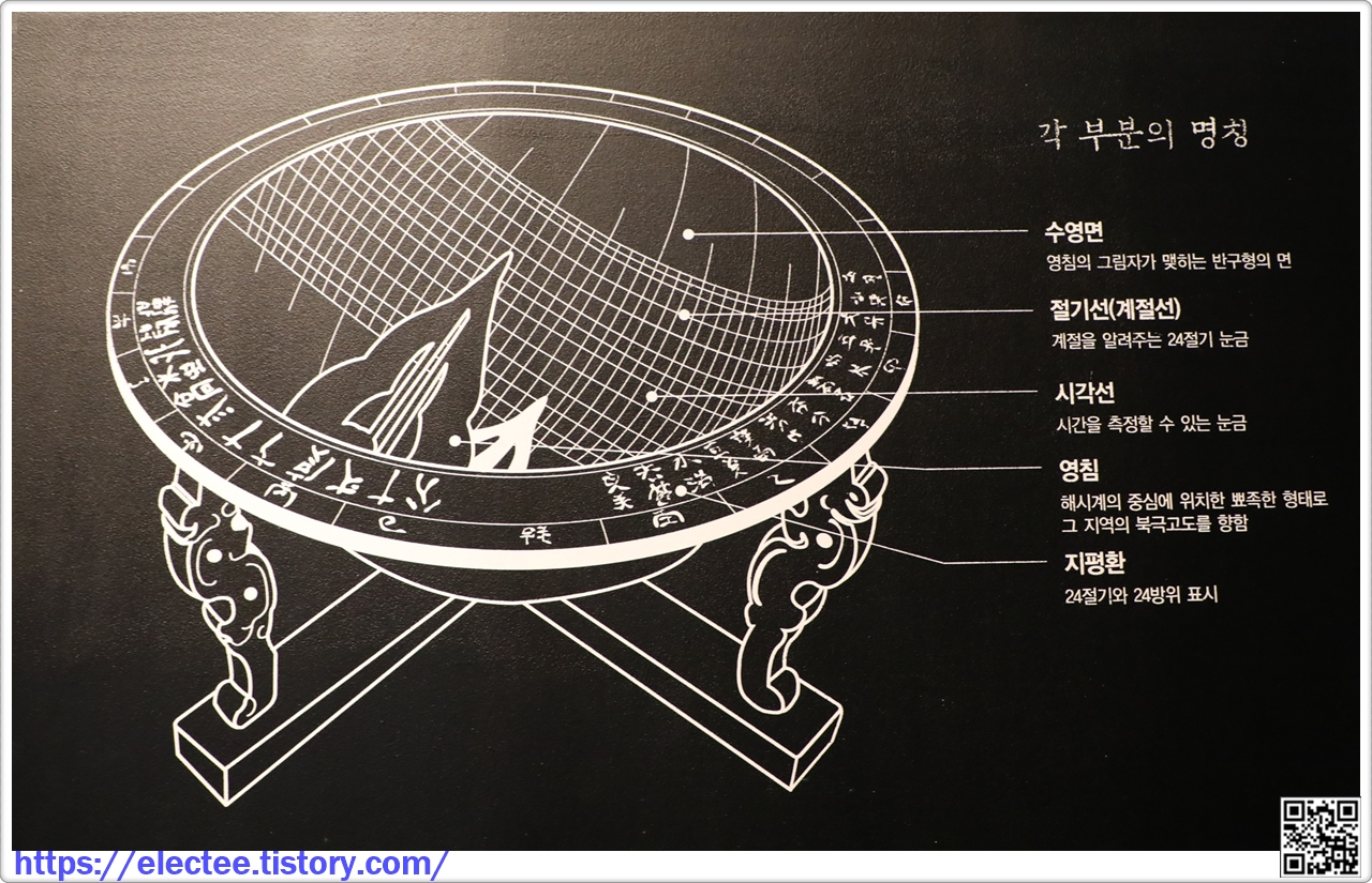 오목한 시계판에 시각을 나타내는 7줄의 세로선과 계절을 나타내는 13줄의 가로선을 그어 시각은 물론 24절기를 알 수 있도록 하였다. 종로 혜정교와 종묘 앞에도 설치하고 글을 모르는 백성들을 위해 12 지신의 그림을 그려서 누구나 시각을 알게 하였다.