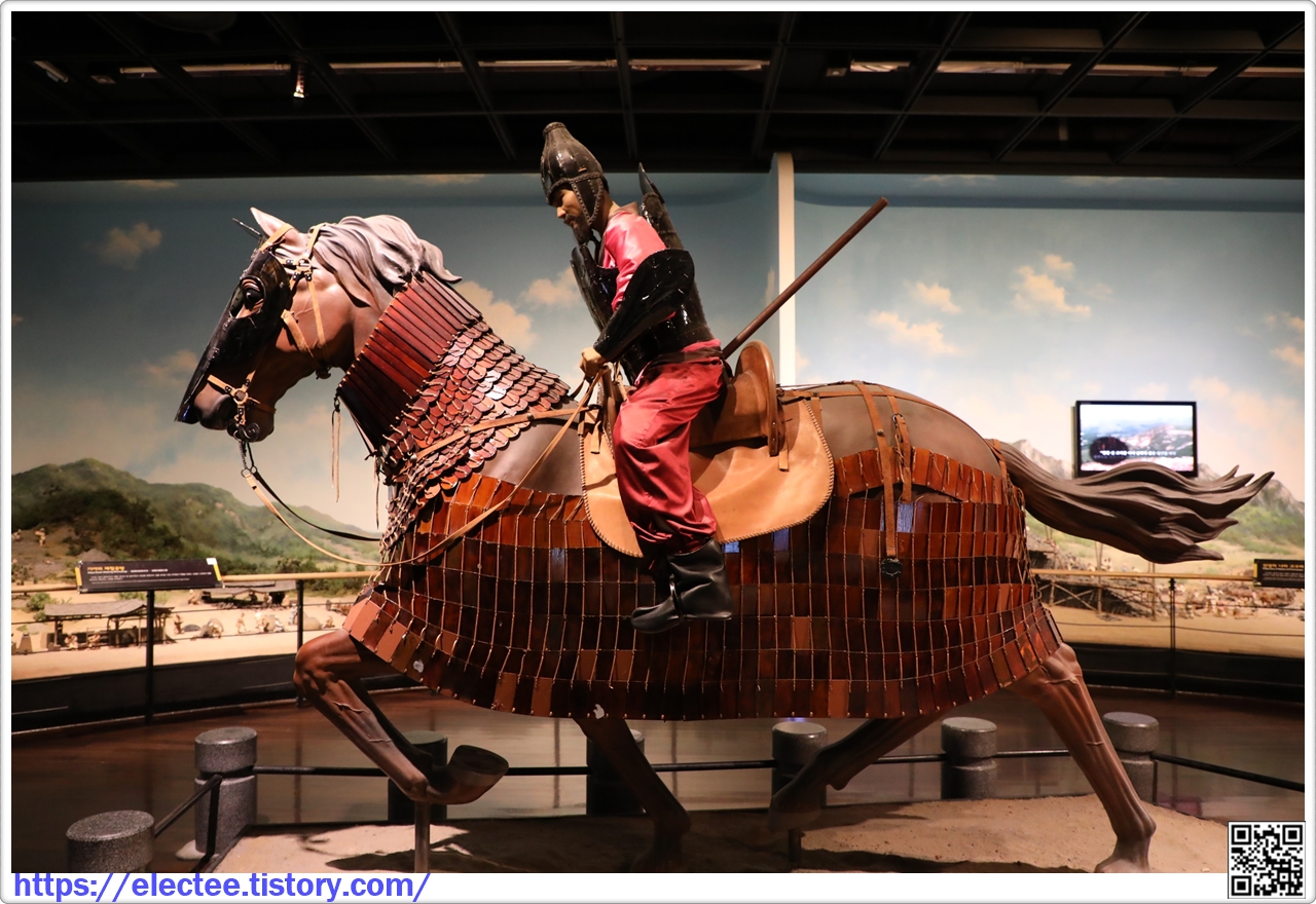 가야는 우수한 철제 갑옷과 무기 등을 생산해 강한 군사력을 유지하였다. 재현된 가야 무사는 판갑옷과 철제 투구를, 말 역시 철로 만든 갑옷과 머리가리개를 쓰고 있다.