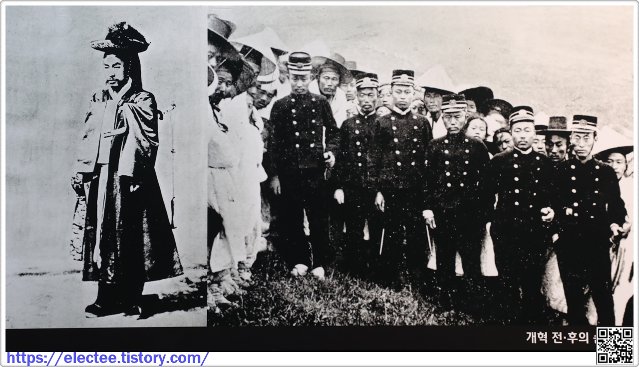 개항 이후 열강의 침략이 계속되면서 국가에 대한 개혁 요구가 높아지는 가운데 1894년 갑오개혁이 시작되었다. 개혁으로 과거제와 신분제가 폐지되었고 재정기관을 탁지아문으로 통일하여 재정을 확충할 수 있었다. 1896년까지 정치·경제·군사 등 모든 분야에 걸쳐 실시된 갑오개혁은 추진 과정에서 일본의 간섭을 받기도 하였지만 개화파 관료들이 주축이 되어 자주적인 개혁을 지향하였고 이를 통해 점차 근대 국가의 모습을 갖출 수 있었다.