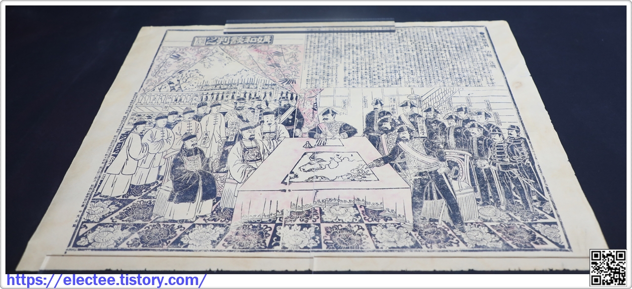 1895년 4월 청일강화조약의 모습을 그린 기록화이다. 조약 체결 당시 청일 양국의 대표로 참여했던 리홍장과 이토 히로부미가 그려져 있다.